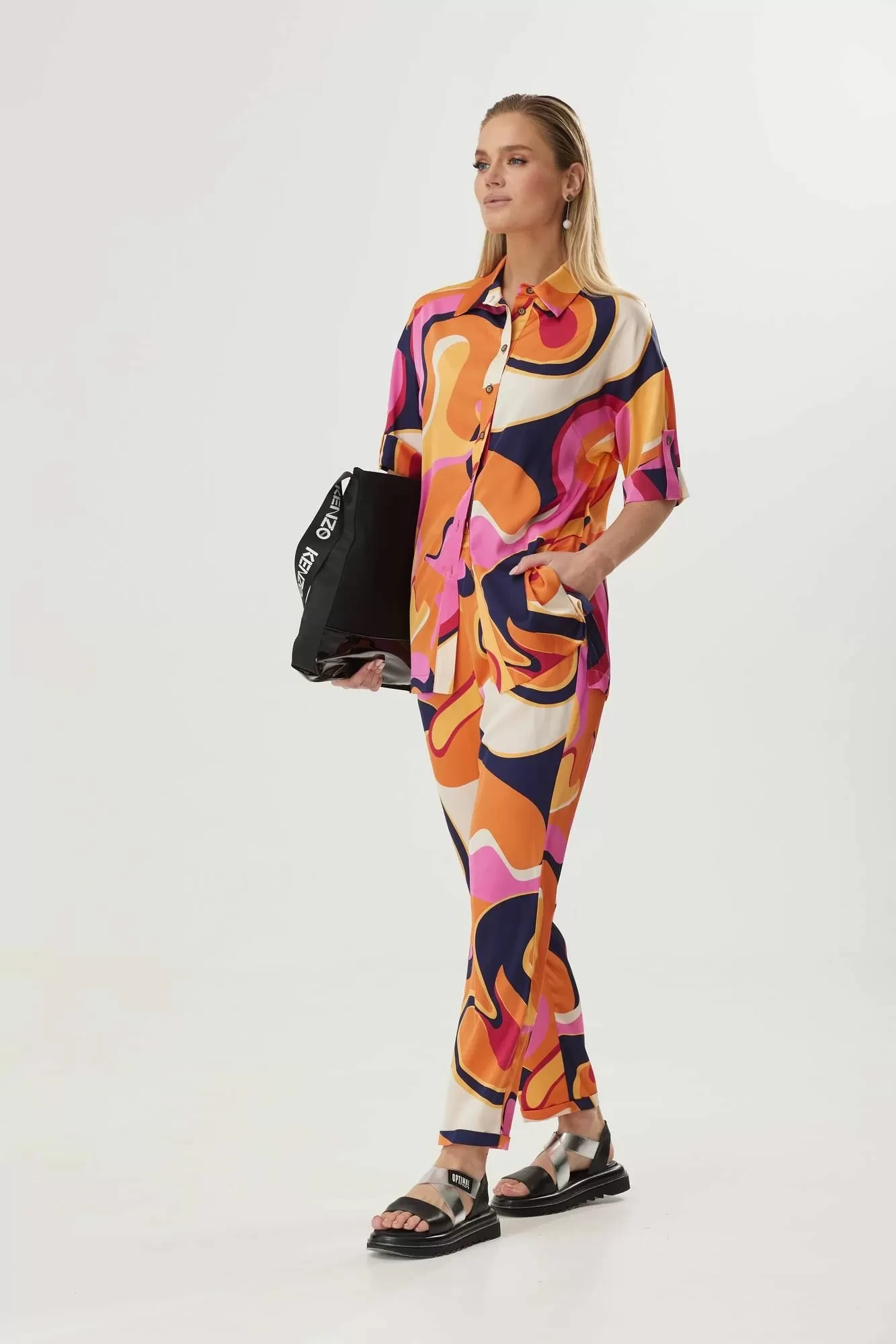 Брючный костюм Твой Имидж 1579-1 оранжевый мультиколор двойка