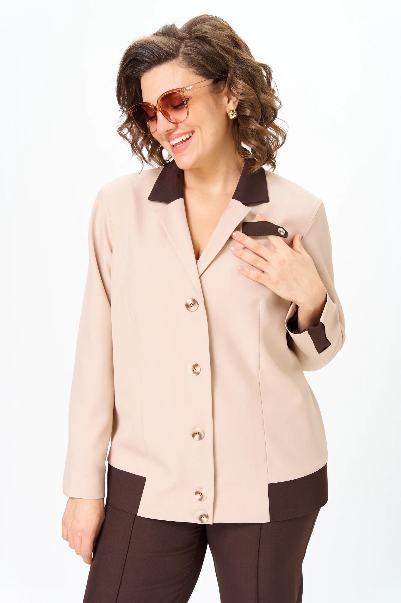 Брючный костюм Vilena Fashion 1144 беж+шоколад двойка