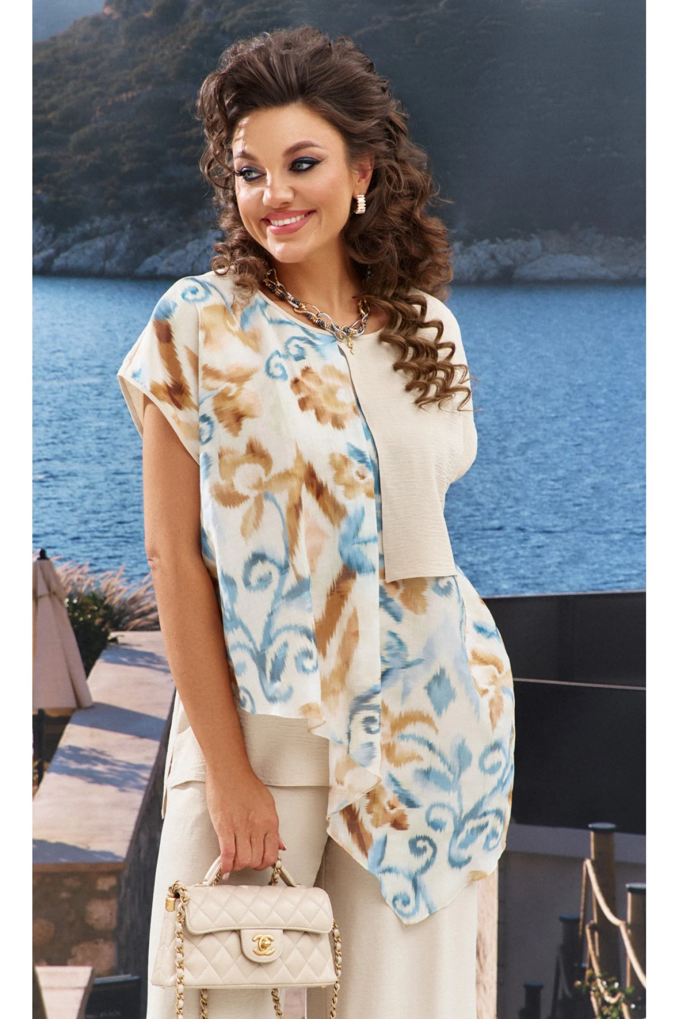 Брючный костюм Vittoria Queen 24793 песочный_мультиколор