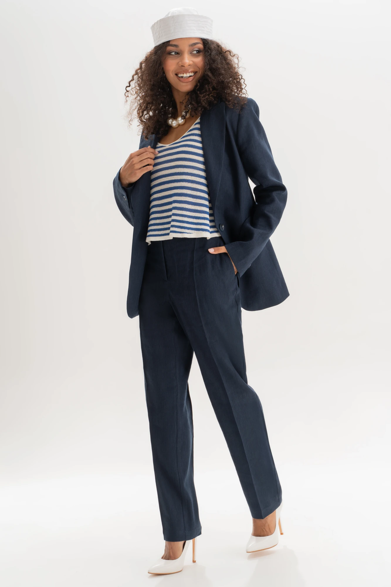 Этот изысканный льняной костюм – воплощение комфорта и утончённого стиля, созданный для женщин, которые ценят качество и универсальность. Благодаря натуральной ткани, костюм идеально подойдёт для тёплого времени года, обеспечивая легкость и комфорт в течение всего дня. Этот костюм можно носить с классической блузой и лодочками для делового образа, или с лёгким топом и кедами – для расслабленного стильного аутфита. Незаменимый элемент гардероба для тех, кто любит стиль, качество и комфорт!