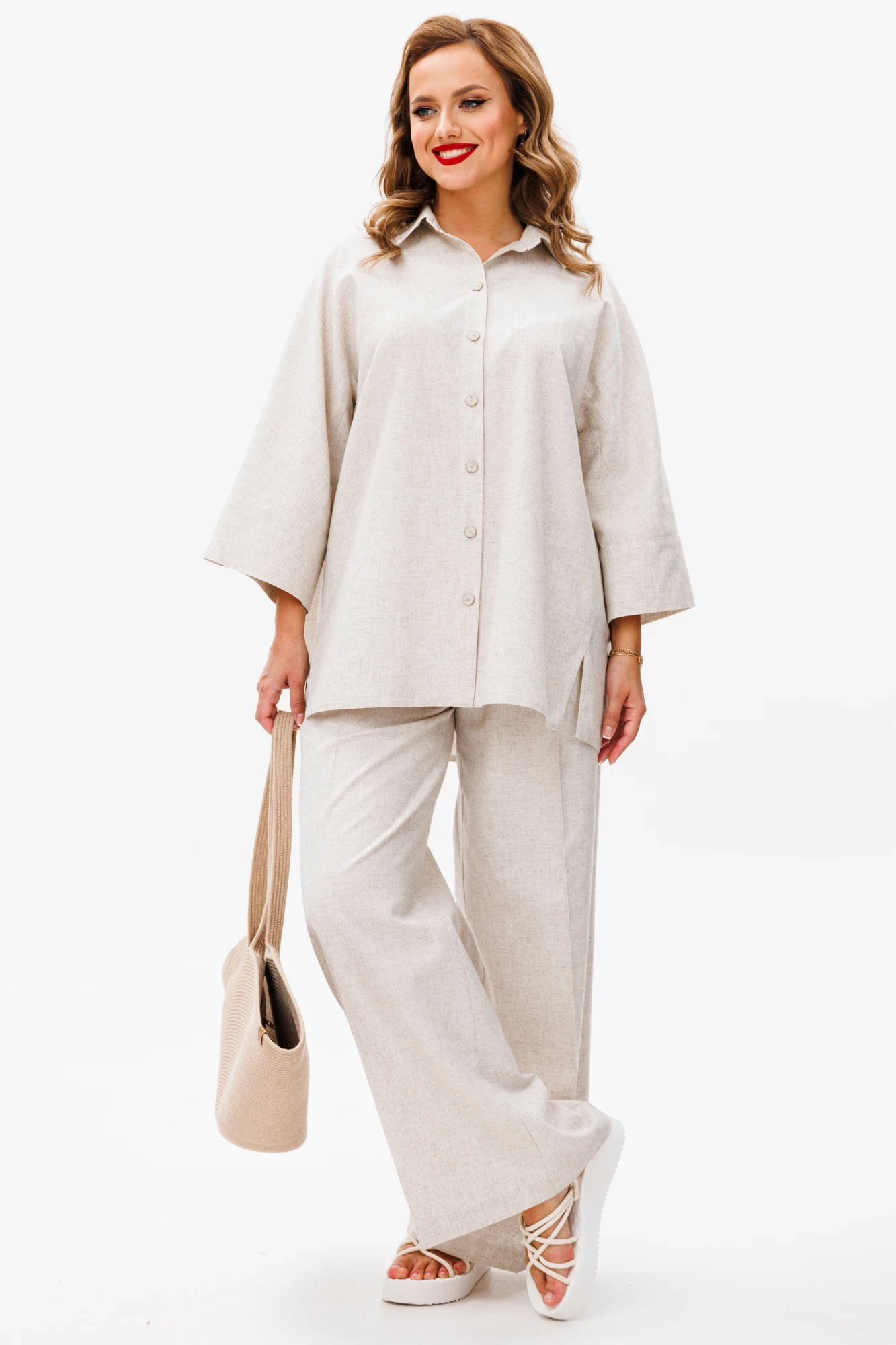 | 46:Блузка Длина посередине спинки – 74,0 см (±2,0 см), Ширина на уровне глубины проймы – 57,0 см (±1,0 см), Ширина на уровне линии талии – 63,0 см (±1,0 см), Ширина на уровне линии бедер – 69,0 см (±1,0 см), Длина рукава от шва втачивания воротника с манжетой – 61,0 см (±1,0 см), длина манжеты - 10,0 см (±0,5 см), Ширина рукава вверху – 22,5 см (±1,0 см), Ширина рукава внизу по манжете - 20,5 см (±0,5 см). Брюки Длина по боковому шву с поясом - 110,0 см (±2,0 см), Ширина на уровне линии талии (резинка пояса в растянутом виде) - 50,5 см (±1,0 см), Ширина на уровне линии бедер - 54,0 см (±1,0 см), Ширина по низу - 30,0 см (±0,5 см), Ширина пояса - 4,5 см. 48:Блузка Длина посередине спинки – 74,0 см (±2,0 см), Ширина на уровне глубины проймы – 58,0 см (±1,0 см), Ширина на уровне линии талии – 65,0 см (±1,0 см), Ширина на уровне линии бедер – 71,0 см (±1,0 см), Длина рукава от шва втачивания воротника с манжетой – 62,0 см (±1,0 см), длина манжеты - 10,0 см (±0,5 см), Ширина рукава вверху – 22,5 см (±1,0 см), Ширина рукава внизу по манжете - 21,5 см (±0,5 см). Брюки Длина по боковому шву с поясом - 110,0 см (±2,0 см), Ширина на уровне линии талии (резинка пояса в растянутом виде) - 52,0 см (±1,0 см), Ширина на уровне линии бедер - 56,0 см (±1,0 см), Ширина по низу - 30,5 см (±0,5 см), Ширина пояса - 4,5 см. 50:Блузка Длина посередине спинки – 77,0 см (±2,0 см), Ширина на уровне глубины проймы – 62,0 см (±1,0 см), Ширина на уровне линии талии – 69,0 см (±1,0 см), Ширина на уровне линии бедер – 74,0 см (±1,0 см), Длина рукава от шва втачивания воротника с манжетой – 61,0 см (±1,0 см), длина манжеты - 10,0 см (±0,5 см), Ширина рукава вверху – 24,0 см (±1,0 см), Ширина рукава внизу по манжете - 21,5 см (±0,5 см). Брюки Длина по боковому шву с поясом - 112,0 см (±2,0 см), Ширина на уровне линии талии (резинка пояса в растянутом виде) - 54,0 см (±1,0 см), Ширина на уровне линии бедер - 58,0 см (±1,0 см), Ширина по низу - 31,0 см (±0,5 см), Ширина пояса - 4,5 см. 52:Блузка Длина посередине спинки – 77,0 см (±2,0 см), Ширина на уровне глубины проймы – 64,0 см (±1,0 см), Ширина на уровне линии талии – 71,0 см (±1,0 см), Ширина на уровне линии бедер – 76,0 см (±1,0 см), Длина рукава от шва втачивания воротника с манжетой – 61,0 см (±1,0 см), длина манжеты - 10,0 см (±0,5 см), Ширина рукава вверху – 25,0 см (±1,0 см), Ширина рукава внизу по манжете - 22,5 см (±0,5 см). Брюки Длина по боковому шву с поясом - 112,0 см (±2,0 см), Ширина на уровне линии талии (резинка пояса в растянутом виде) - 55,0 см (±1,0 см), Ширина на уровне линии бедер - 60,0 см (±1,0 см), Ширина по низу - 31,5 см (±0,5 см), Ширина пояса - 4,5 см. 54:Блузка Длина посередине спинки – 77,0 см (±2,0 см), Ширина на уровне глубины проймы – 67,0 см (±1,0 см), Ширина на уровне линии талии – 73,0 см (±1,0 см), Ширина на уровне линии бедер – 78,0 см (±1,0 см), Длина рукава от шва втачивания воротника с манжетой – 61,5 см (±1,0 см), длина манжеты - 10,0 см (±0,5 см), Ширина рукава вверху – 25,0 см (±1,0 см), Ширина рукава внизу по манжете - 23,0 см (±0,5 см). Брюки Длина по боковому шву с поясом - 112,0 см (±2,0 см), Ширина на уровне линии талии (резинка пояса в растянутом виде) - 58,0 см (±1,0 см), Ширина на уровне линии бедер - 62,0 см (±1,0 см), Ширина по низу - 31,5 см (±0,5 см), Ширина пояса - 4,5 см. 56:Блузка Длина посередине спинки – 77,0 см (±2,0 см), Ширина на уровне глубины проймы – 69,0 см (±1,0 см), Ширина на уровне линии талии – 76,0 см (±1,0 см), Ширина на уровне линии бедер – 80,0 см (±1,0 см), Длина рукава от шва втачивания воротника с манжетой – 61,5 см (±1,0 см), длина манжеты - 10,0 см (±0,5 см), Ширина рукава вверху – 25,5 см (±1,0 см), Ширина рукава внизу по манжете - 23,5 см (±0,5 см). Бр