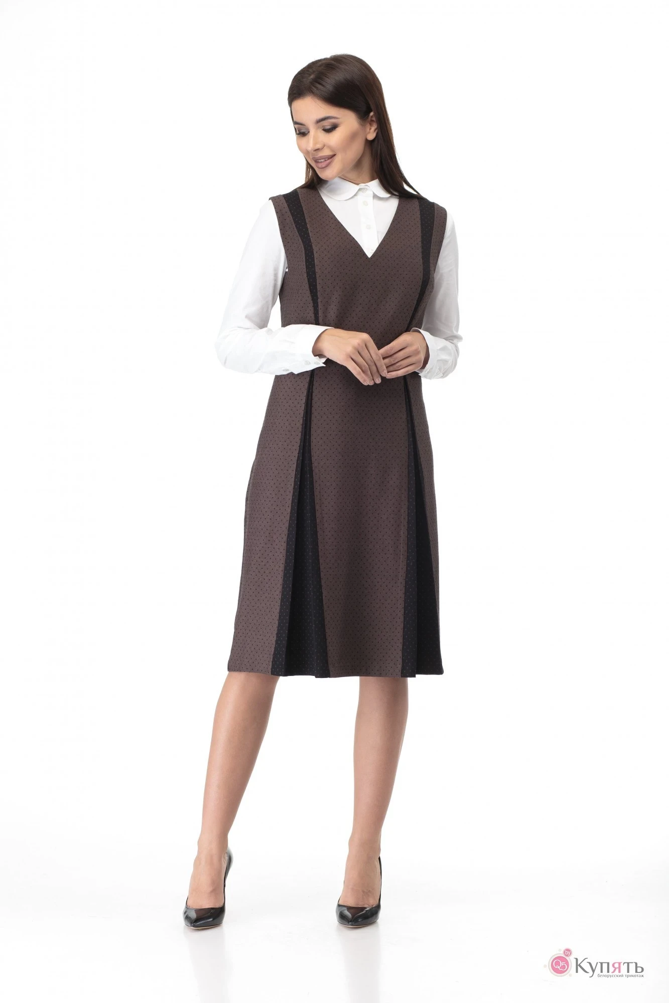 Полуприлегающий силуэт сарафана, выверенные рельефы переда со вставками из отделочной ткани добавляют в простую на первый взгляд модель, изюминку и особое очарование! Вырез проймы квадратный, горловина с v-образным вырезом.