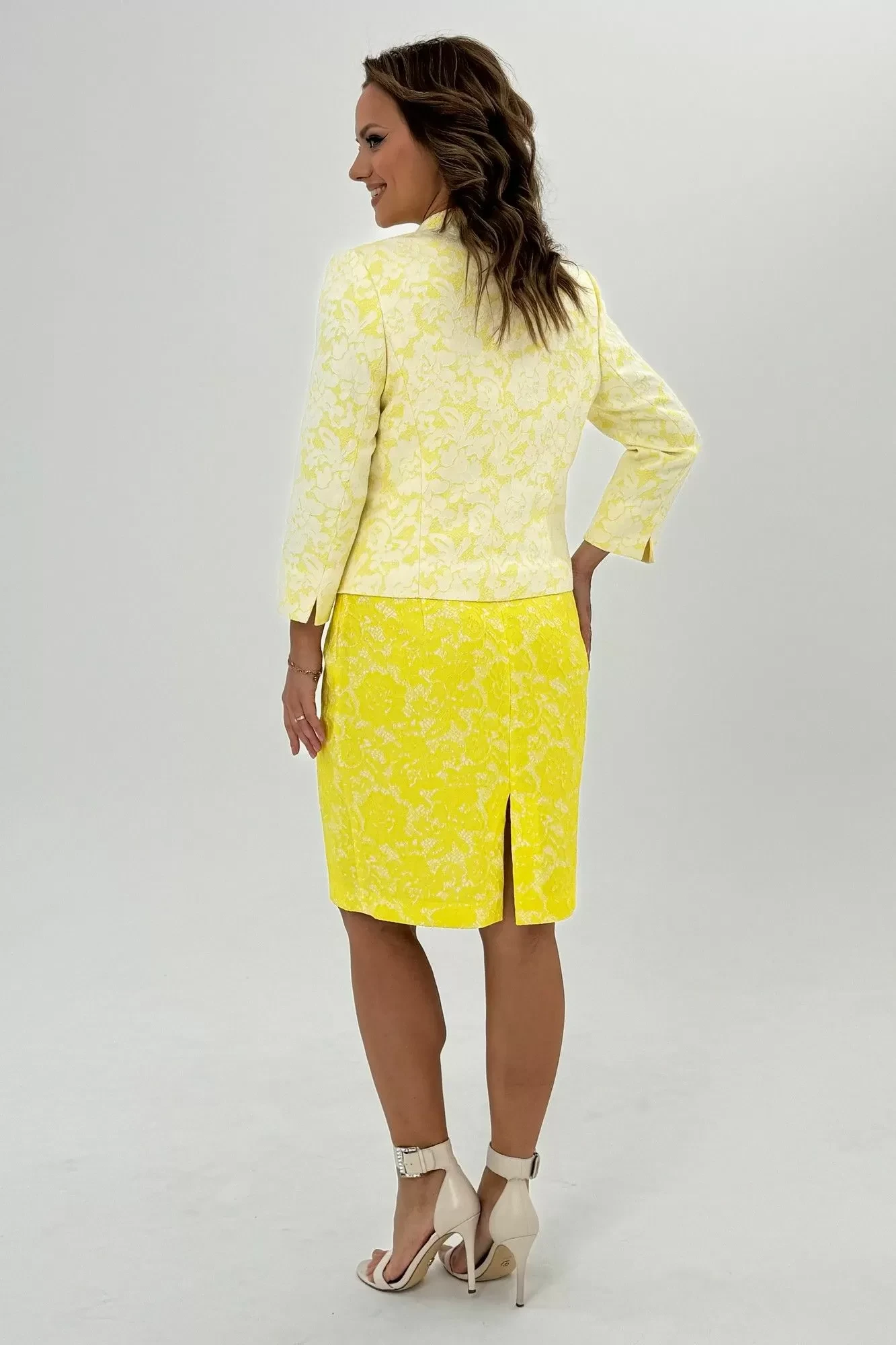 Стильный костюм, состоящий жакета на подкладке и платья без подкладки. Жакет полуприлегающий, выполнен из высококачественного материала. Застежка-бант. Платье полуприлегающего силуэта, с разрезом. Идеальный вариант для стильной и уверенной в себе женщины.