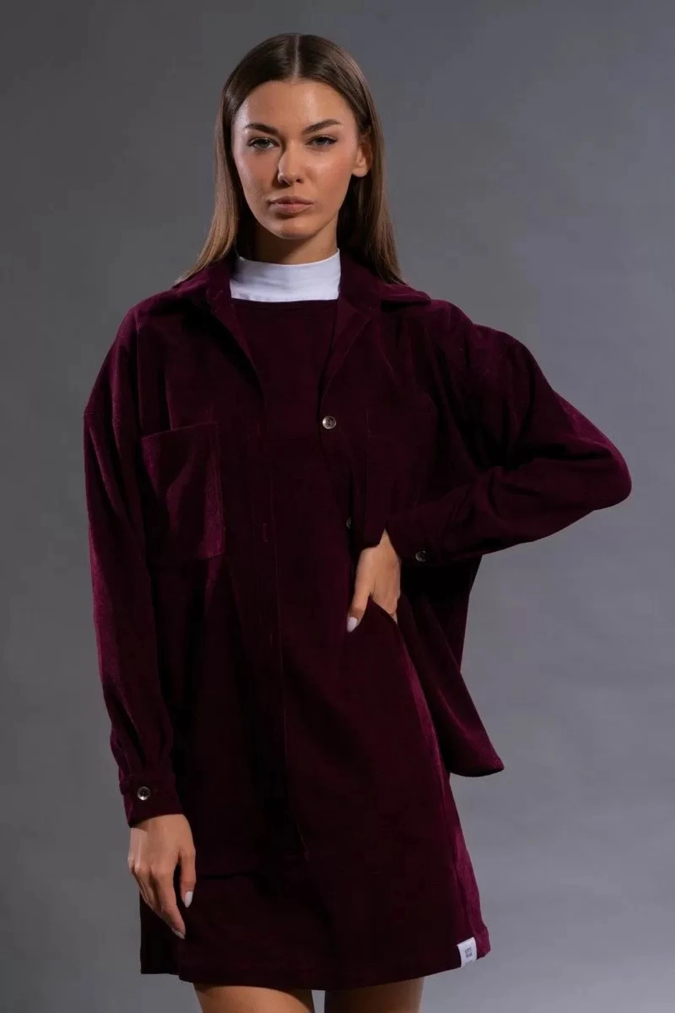 Сочетание укороченного приталенного платья и стильной рубашки делают этот образ идеальным для любого случая.