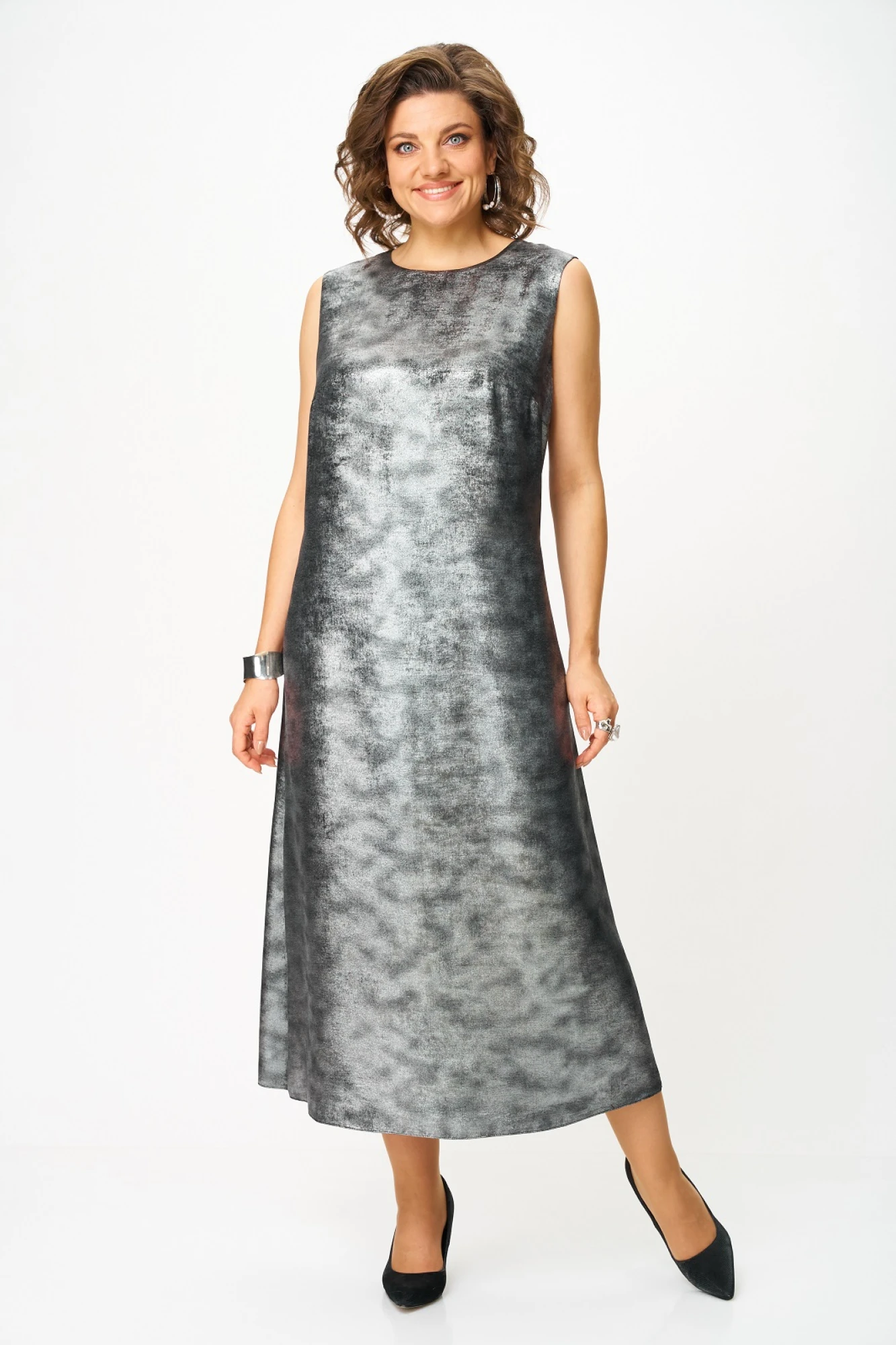 Костюм с платьем Кокетка и К 1320 серебристый+черный двойка