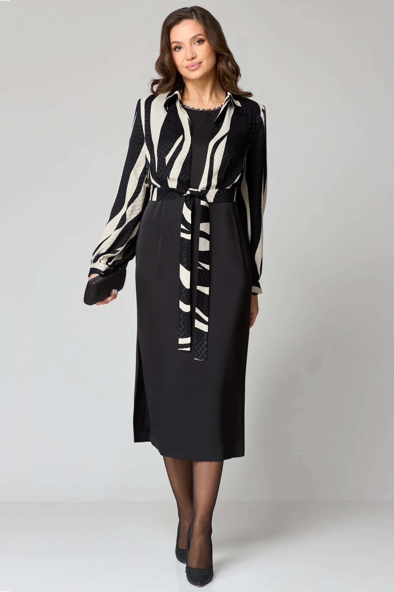 Костюм с платьем из атласа Мишель Стиль 1230 черно-молочный