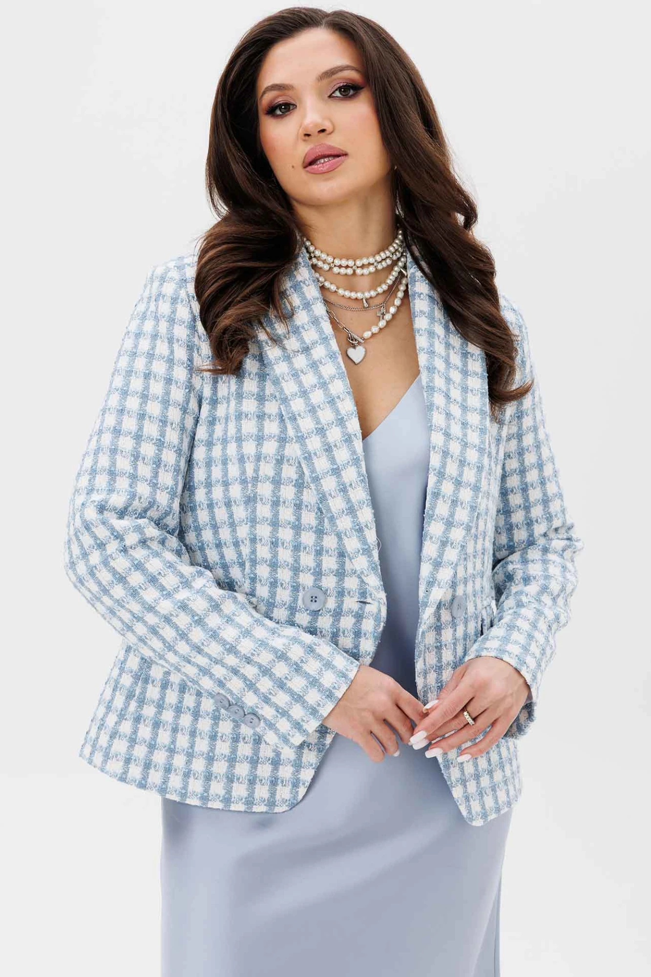 Костюм с платьем MisLana 1204 голубой/клетка двойка