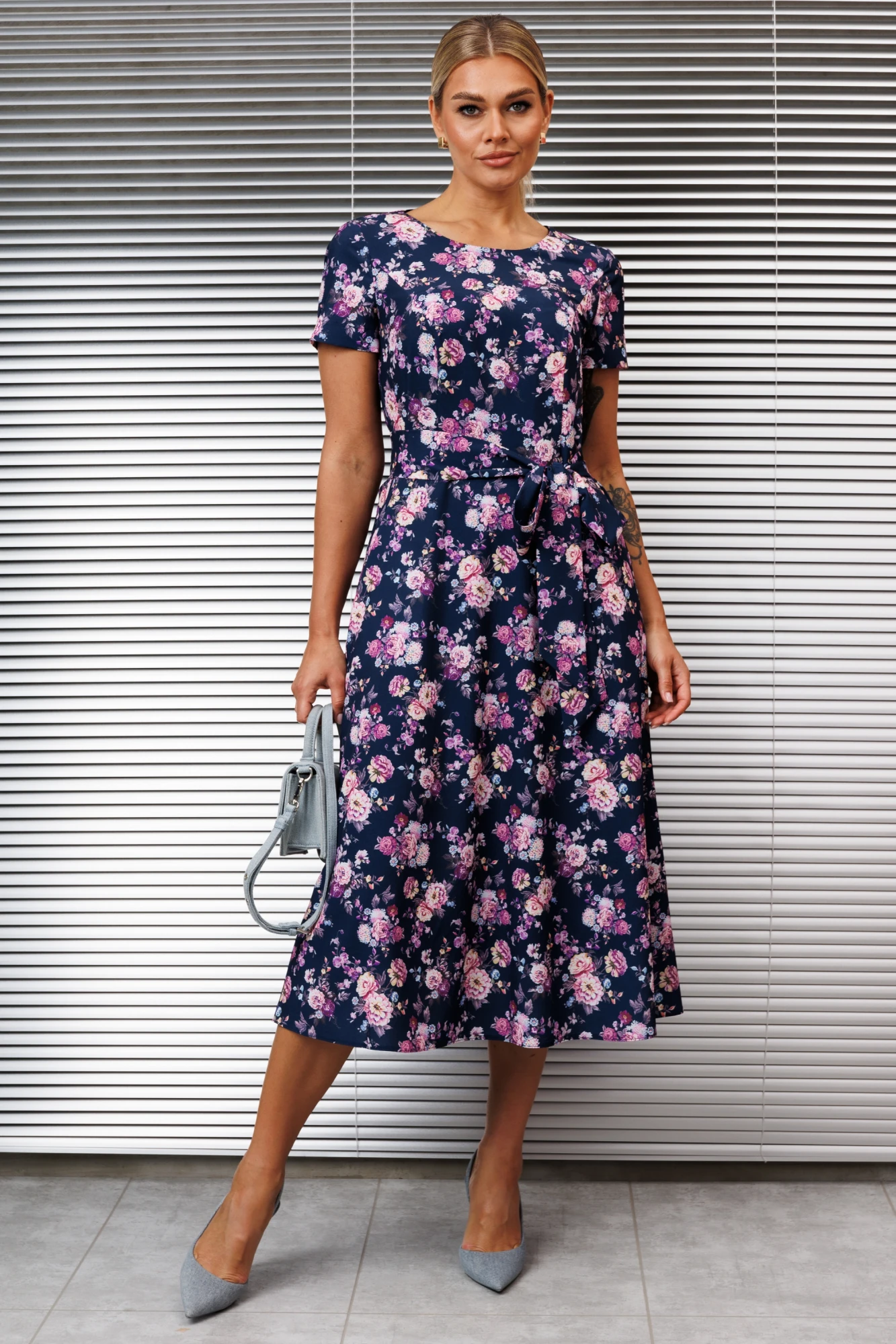 Костюм с платьем Мода-Юрс 2854 синий_цветы двойка