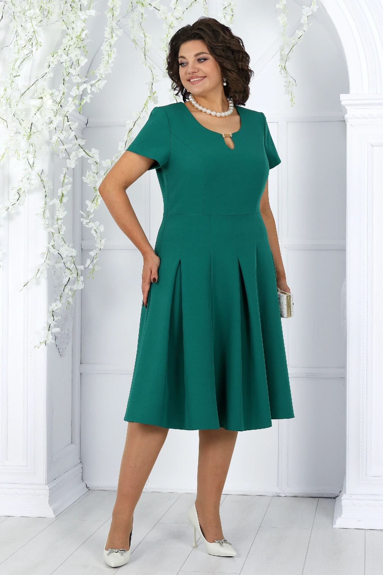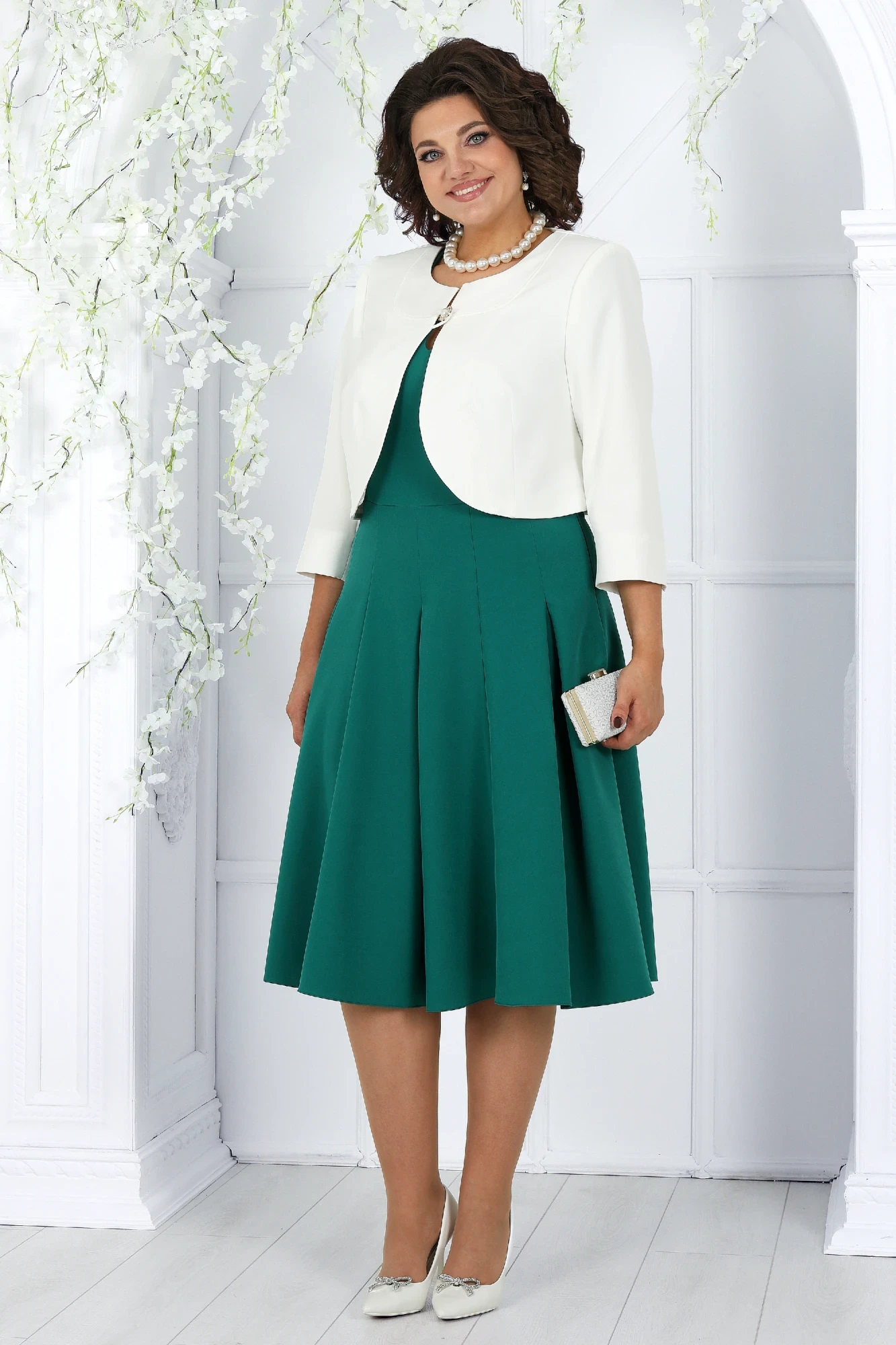 Костюм с платьем Нинель Шик 6013 двойка изумруд