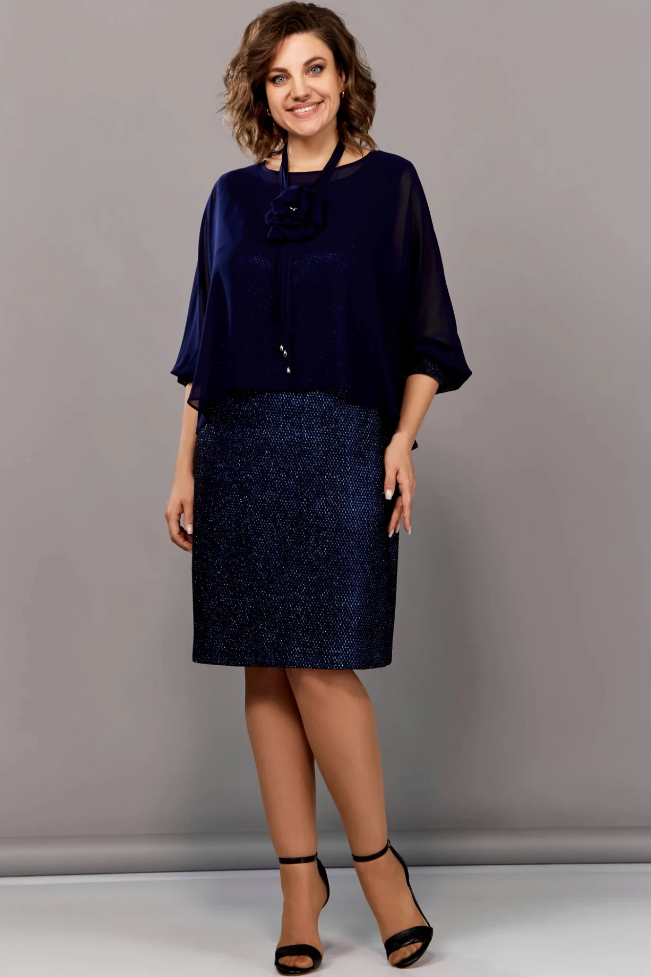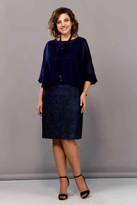 Костюм с платьем Ольга Стиль 874 темно-синий