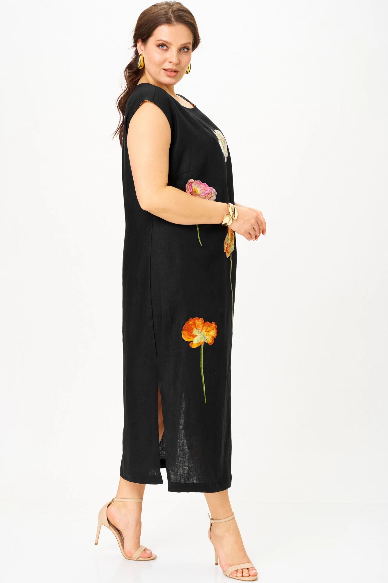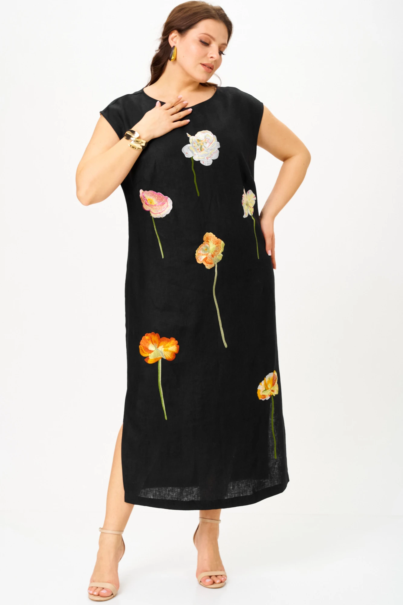 Удивительно комфортное для жаркого лета. Платье прямого силуэта. Спущенная линия плеча. Цветочная авторская вышивка придаёт изделию этнический и аутентичный стиль.