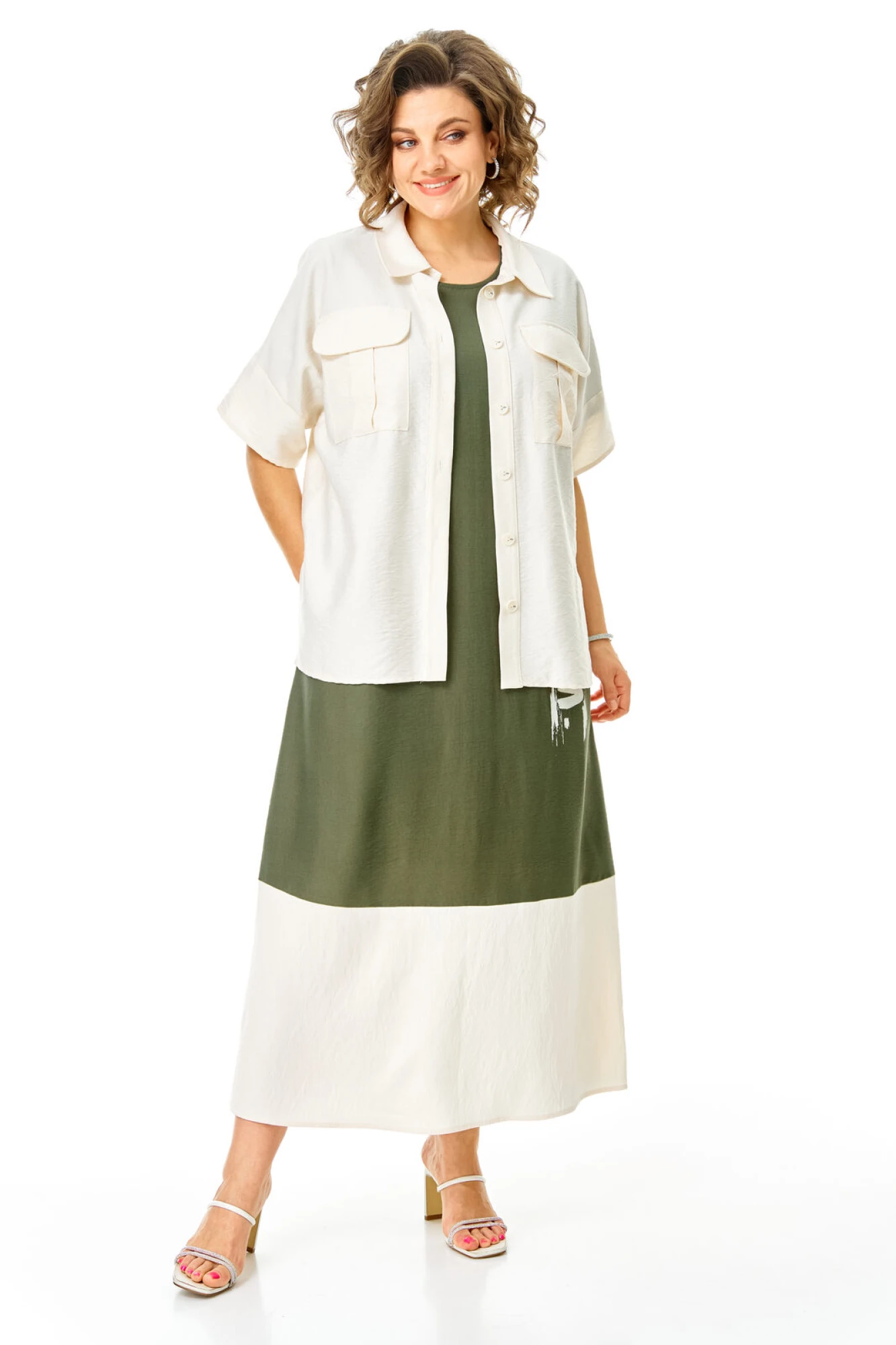 Костюм с платьем Vi Oro 1256 оливка+молоко двойка