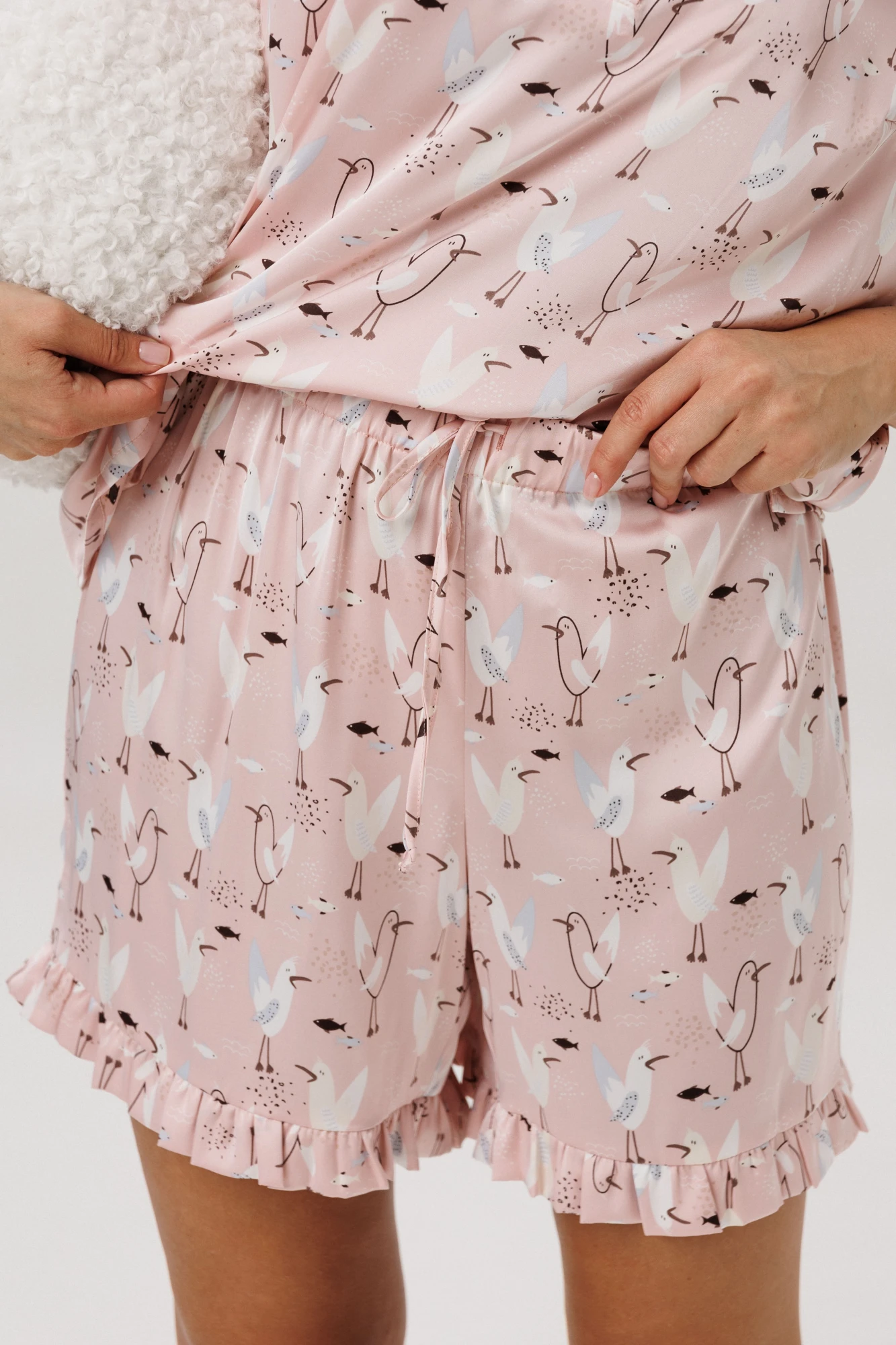 Пояс шорт на резинке с завязками подчеркивает изящество фигуры и не стесняет движения.