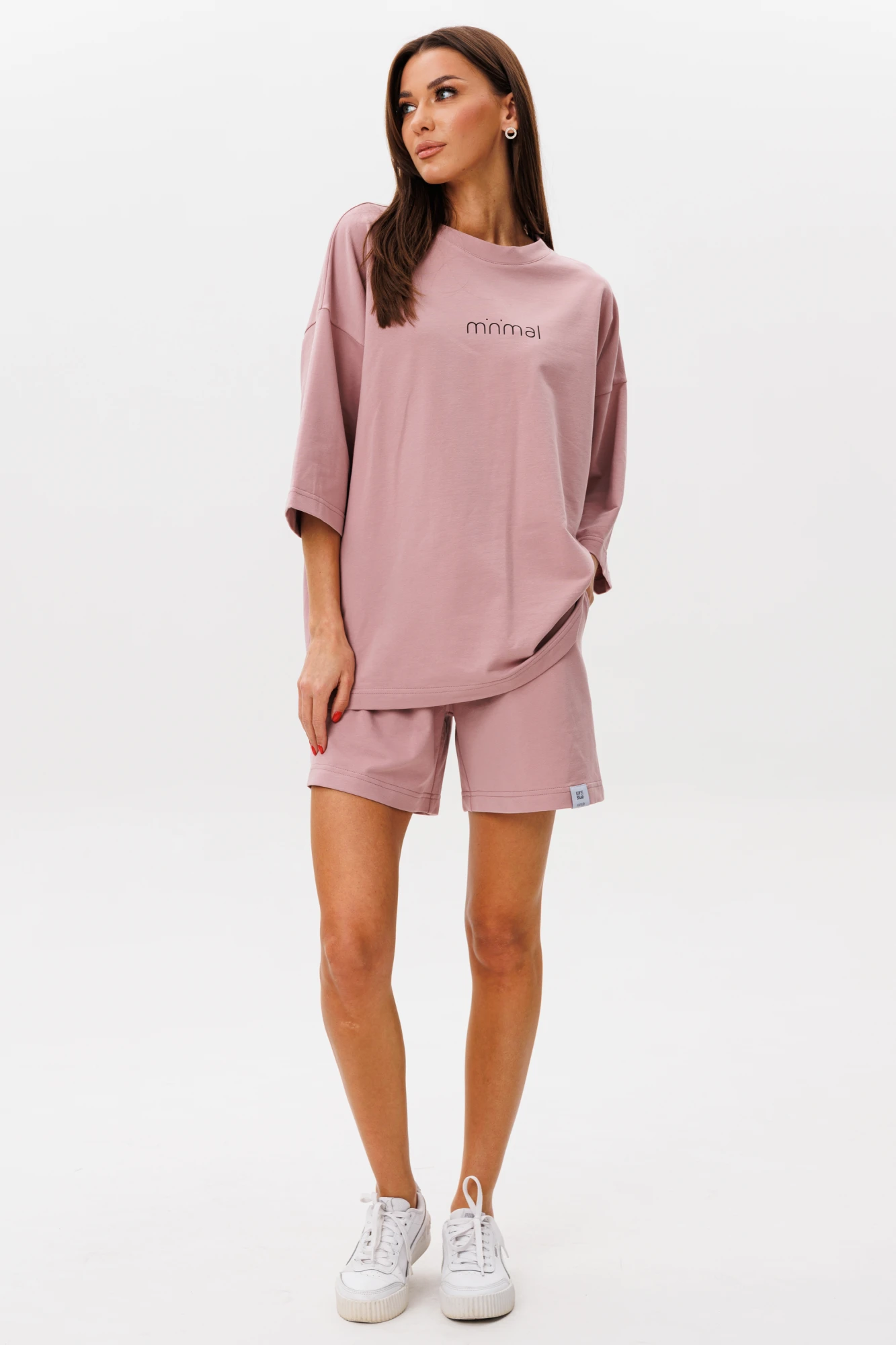 Костюм оверсайз с классическими прямыми шортами средней посадки с карманами в боковых швах. Свитшот оверсайз с приспущенным рукавом Ткань 2-х ниточный футер внутренним слоем из хлопка, качество Пенье, плотность 265 г.м