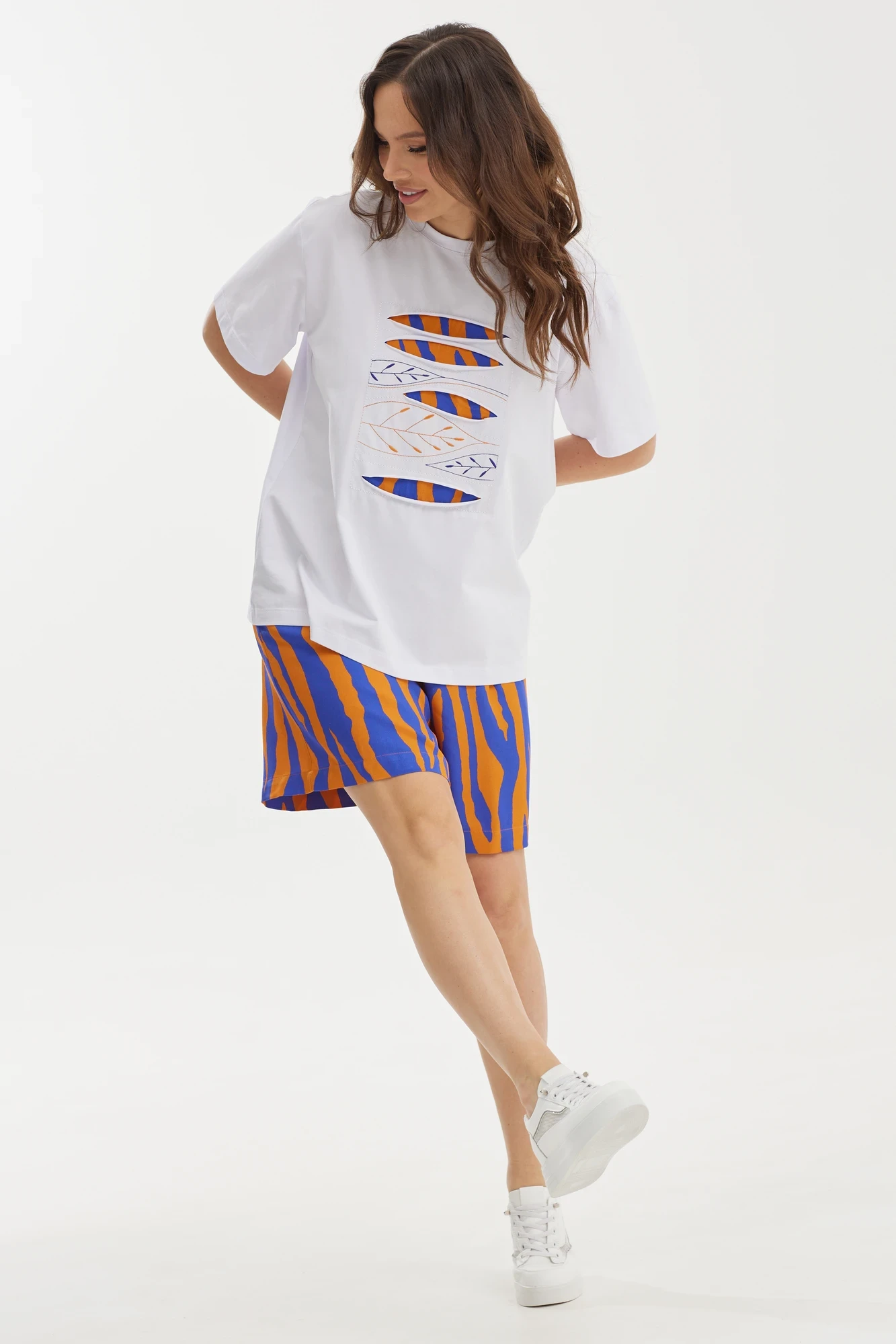 Костюм с шортами Магия Моды 2438 белый+синий+ оранж
