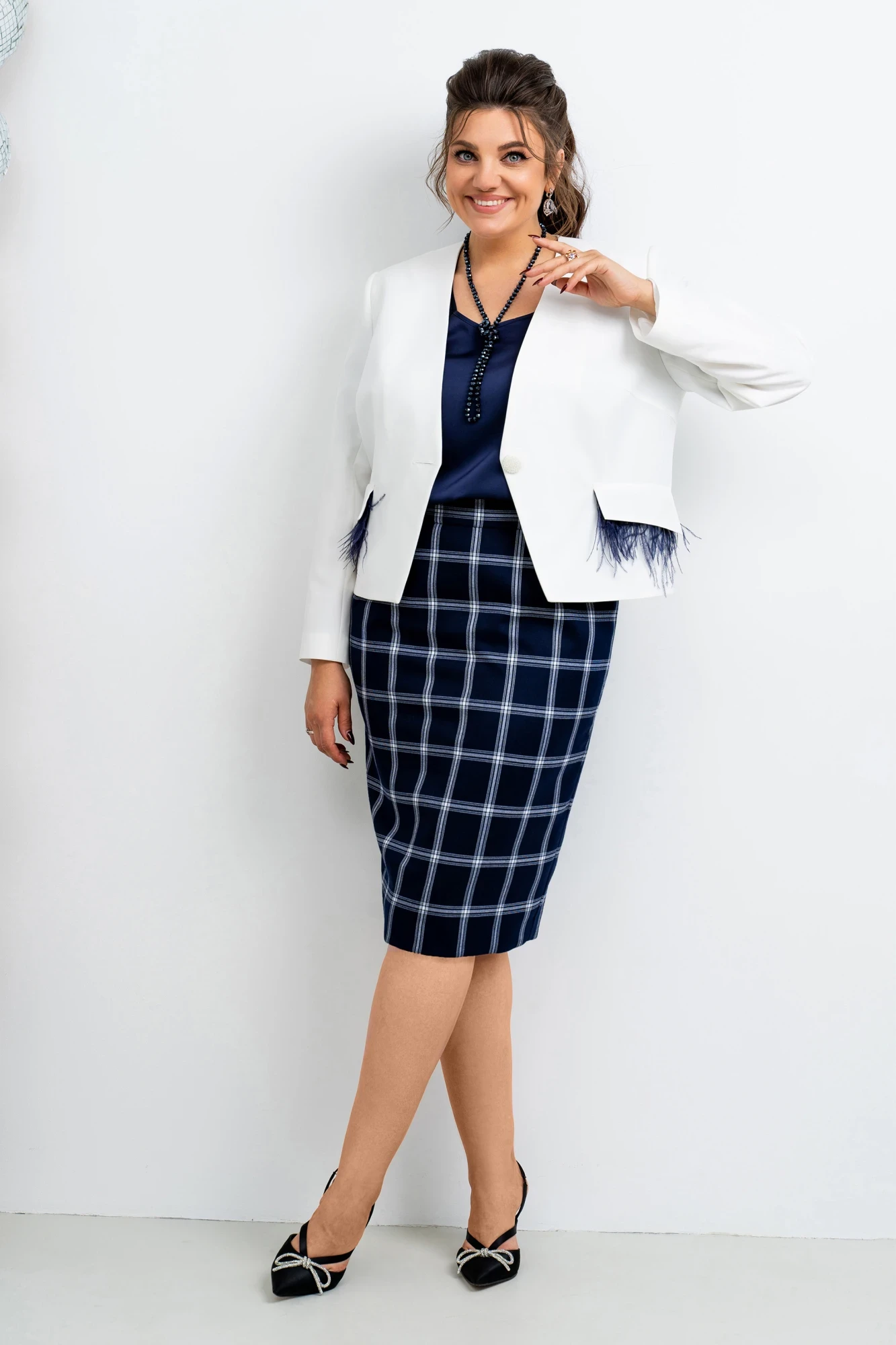 Юбочный костюм AIRA style 24-11 Молочно-синий тройка