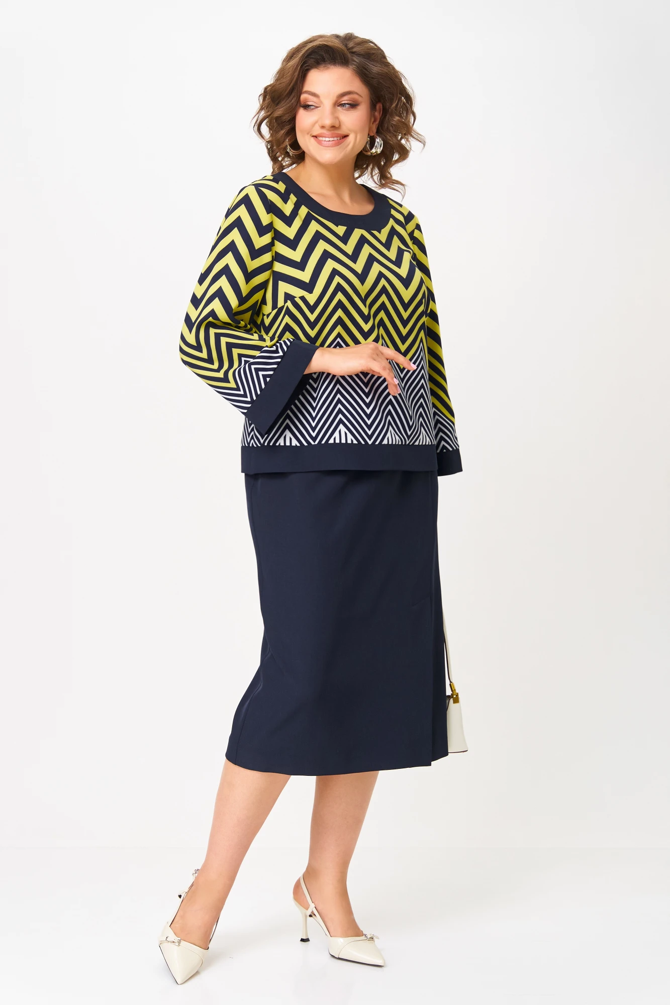 Юбочный костюм AIRA style 24126 лимонно-синий двойка