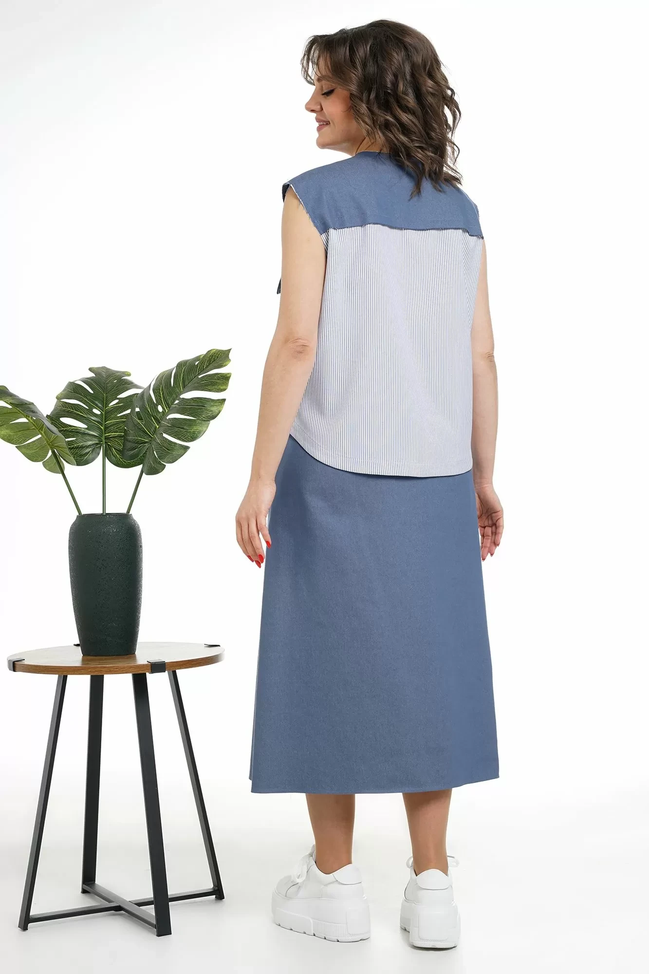 Комплект женский 2-х предметный состоит из жилета и юбки.