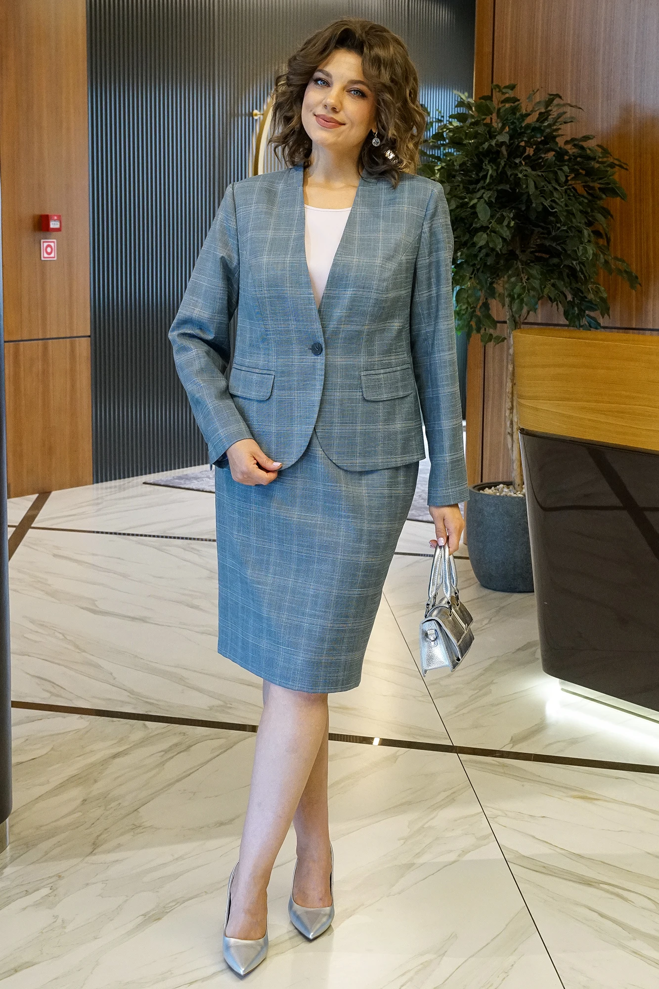 Юбочный костюм ALANI COLLECTION 2382 серо-голубая_клетка тройка