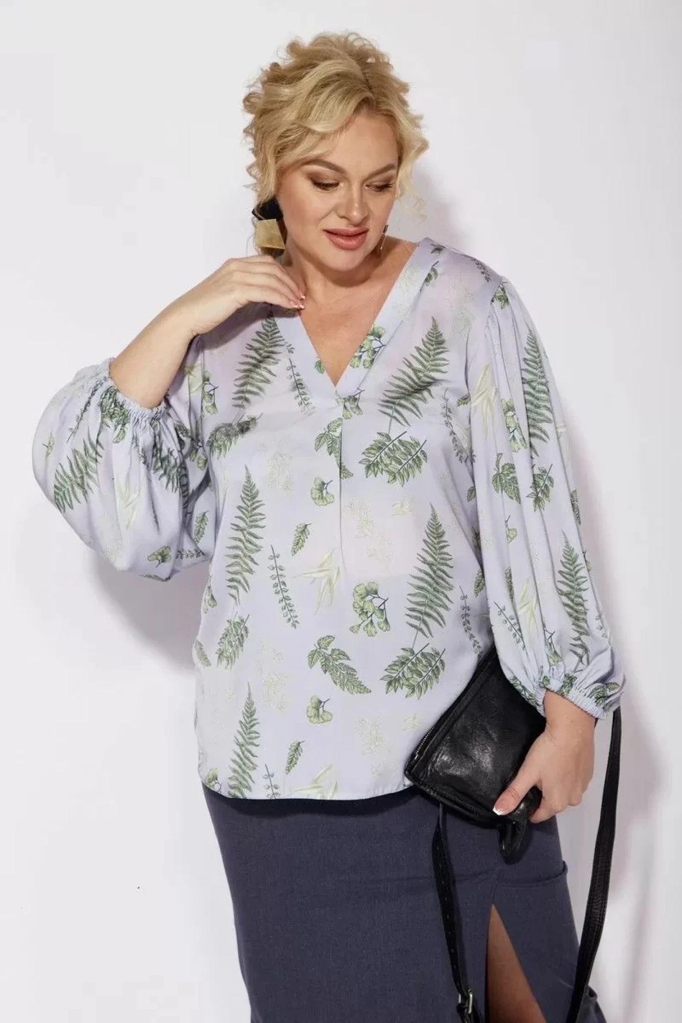 1049 принт листья/графит двойка