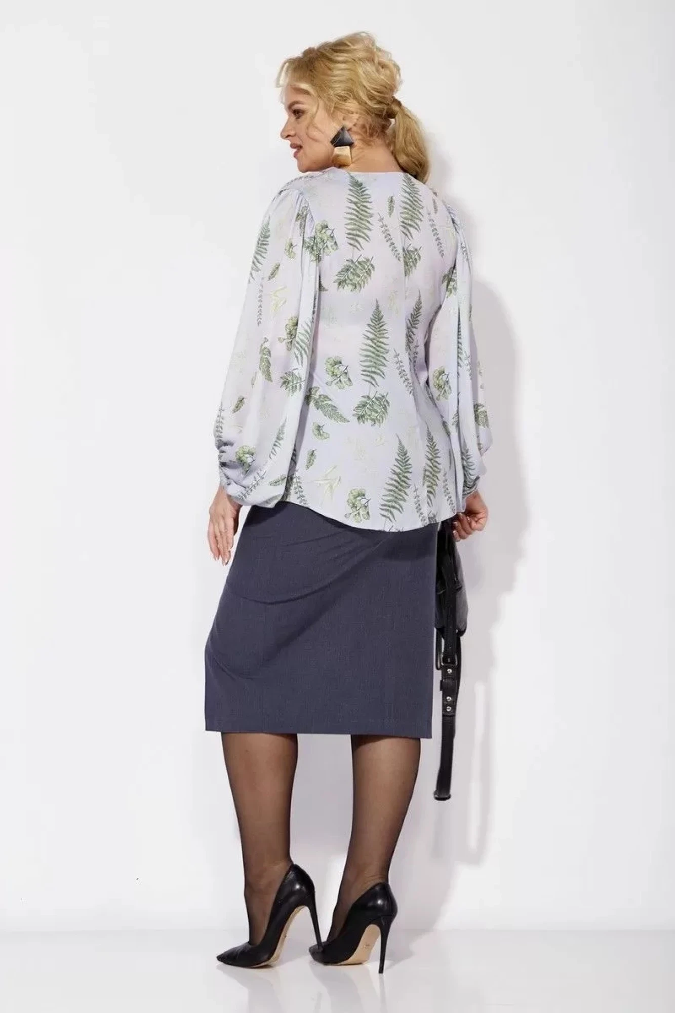 Юбочный костюм Anastasia 1049 принт листья/графит двойка