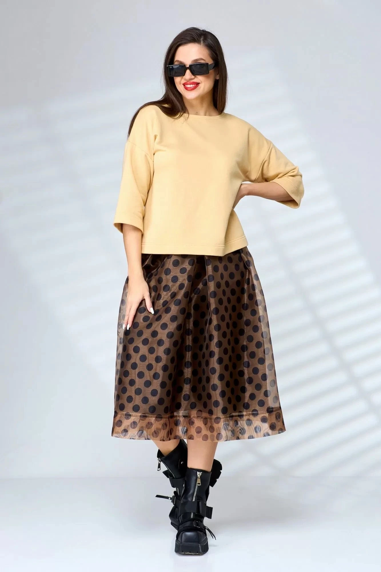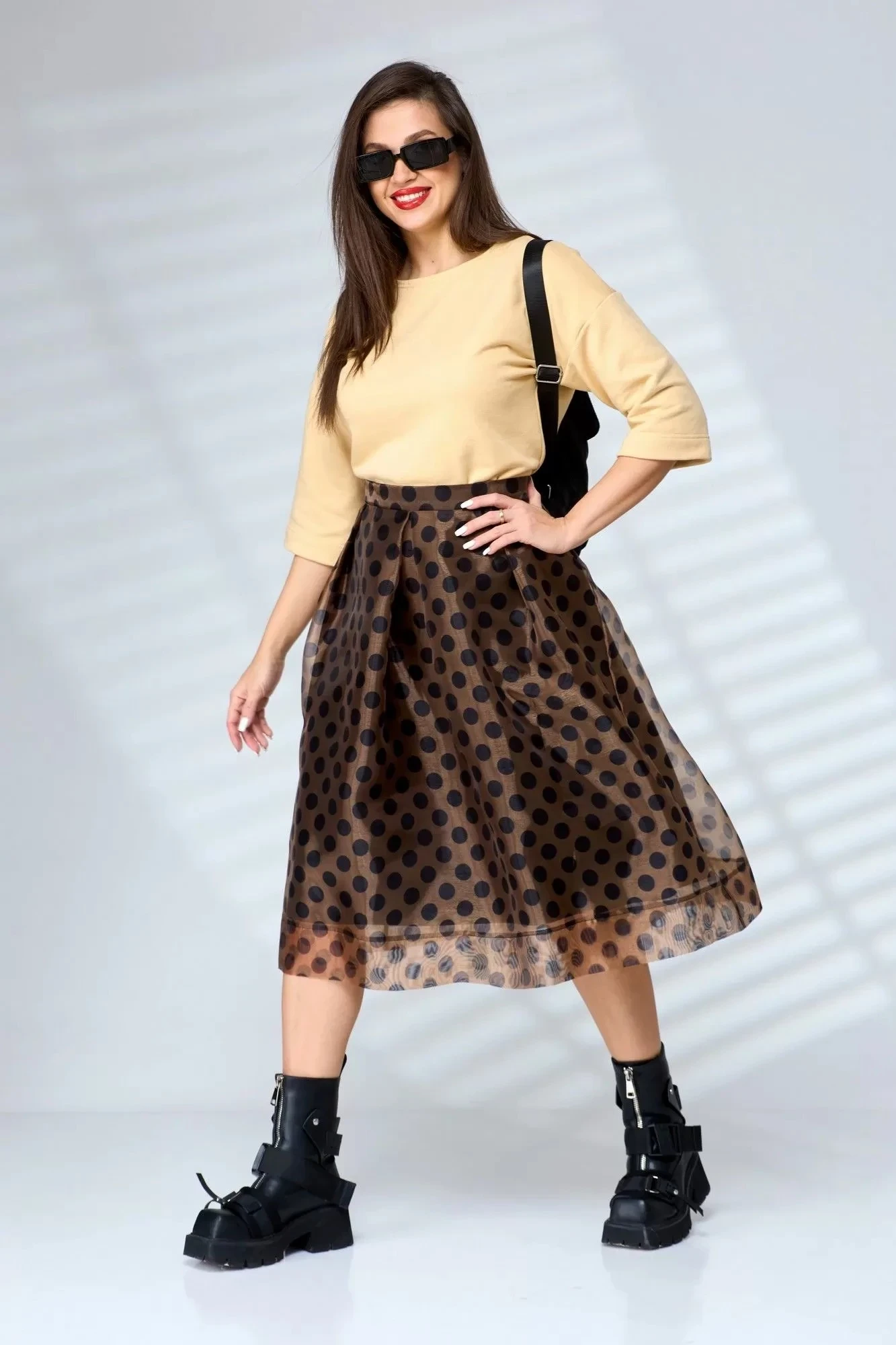 Юбочный костюм Anastasia 1071.1 песочный+кофейный двойка