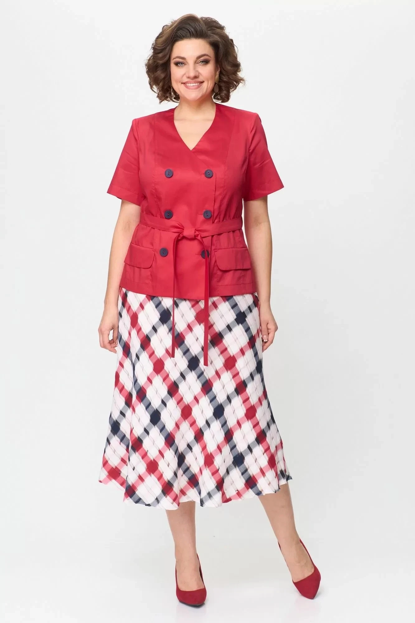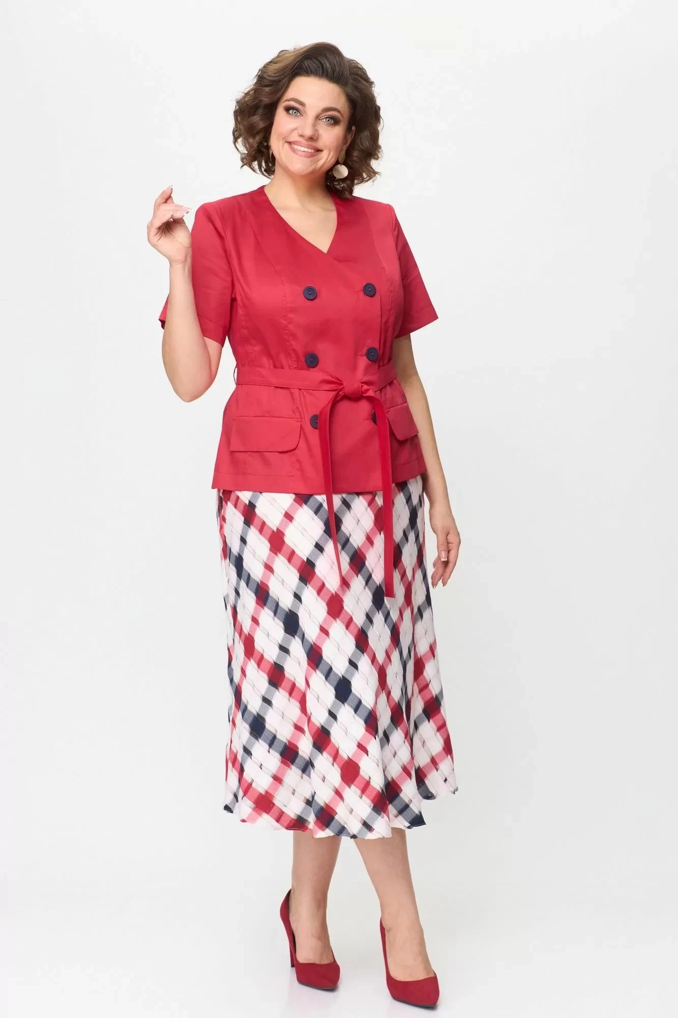 Хлопковый юбочный костюм Anastasia Mak 1176 алый+клетка