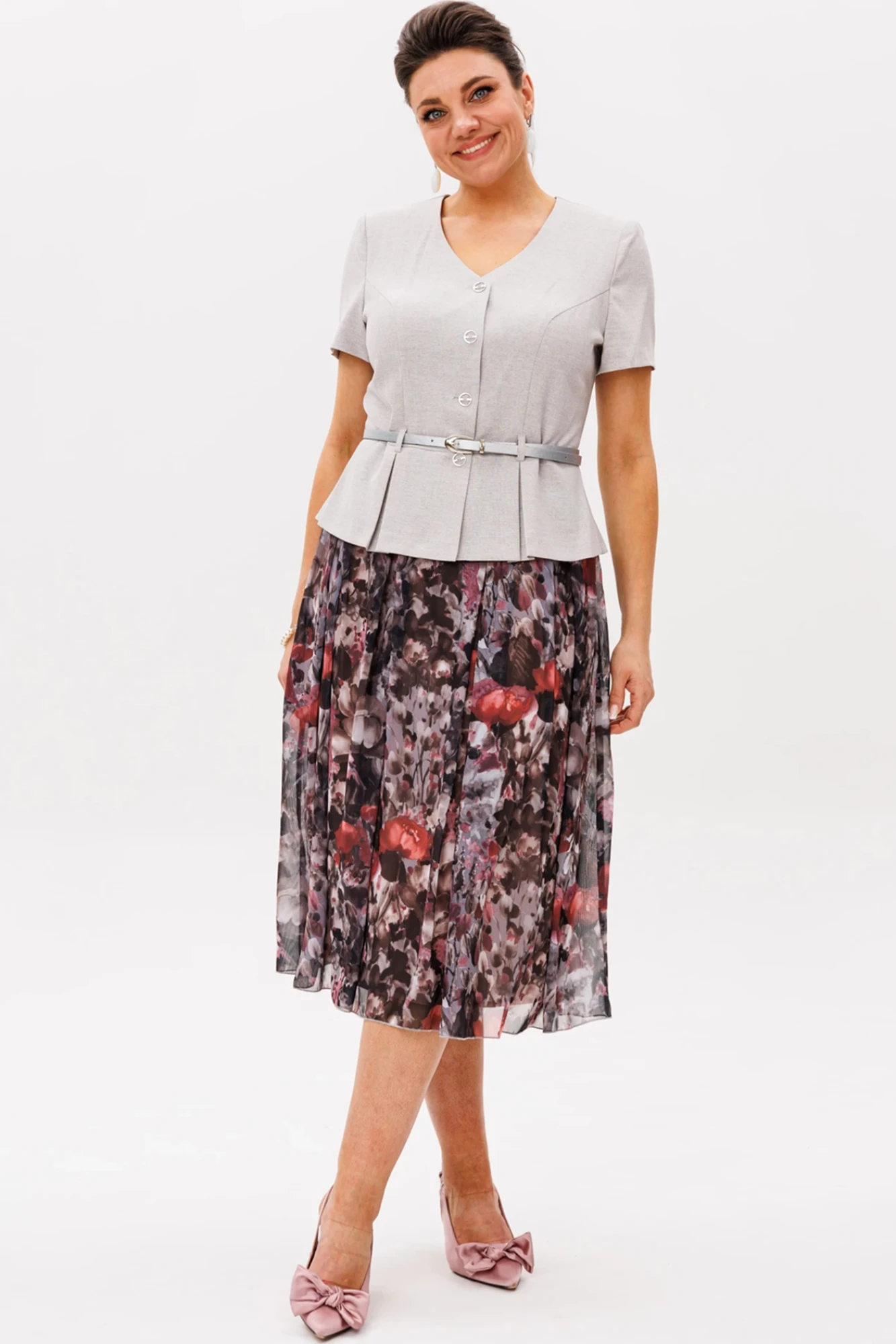 Этот костюм, состоящий из жакета с баской и юбки, станет отличным дополнением вашего гардероба. Жакет выполнен без подкладки, что придает ему легкость и комфорт в носке. Он застегивается на пуговицы спереди и комплектуется съемным ремнем, позволяющим подчеркнуть талию и создать идеальный силуэт.