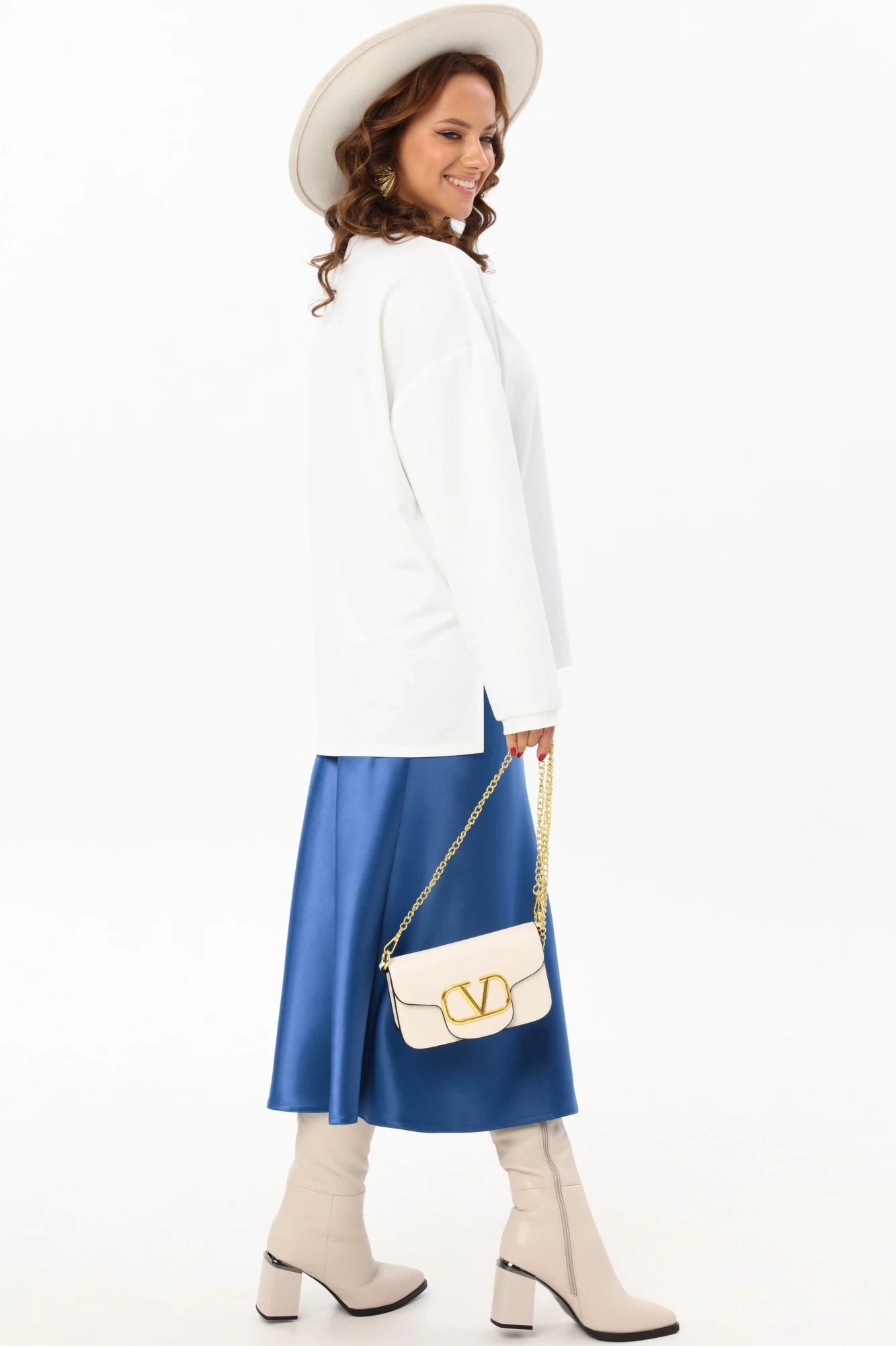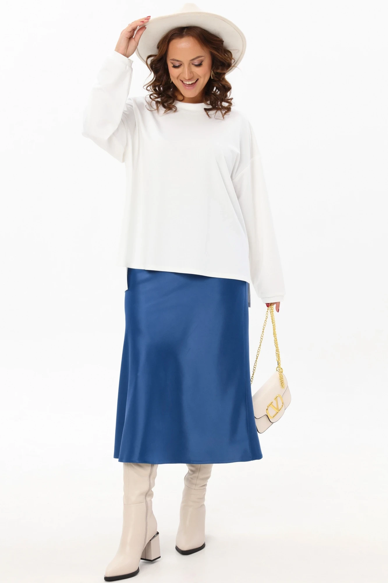 "Модный женский комплект состоит из атласной юбки и однотонного свободного джемпера.