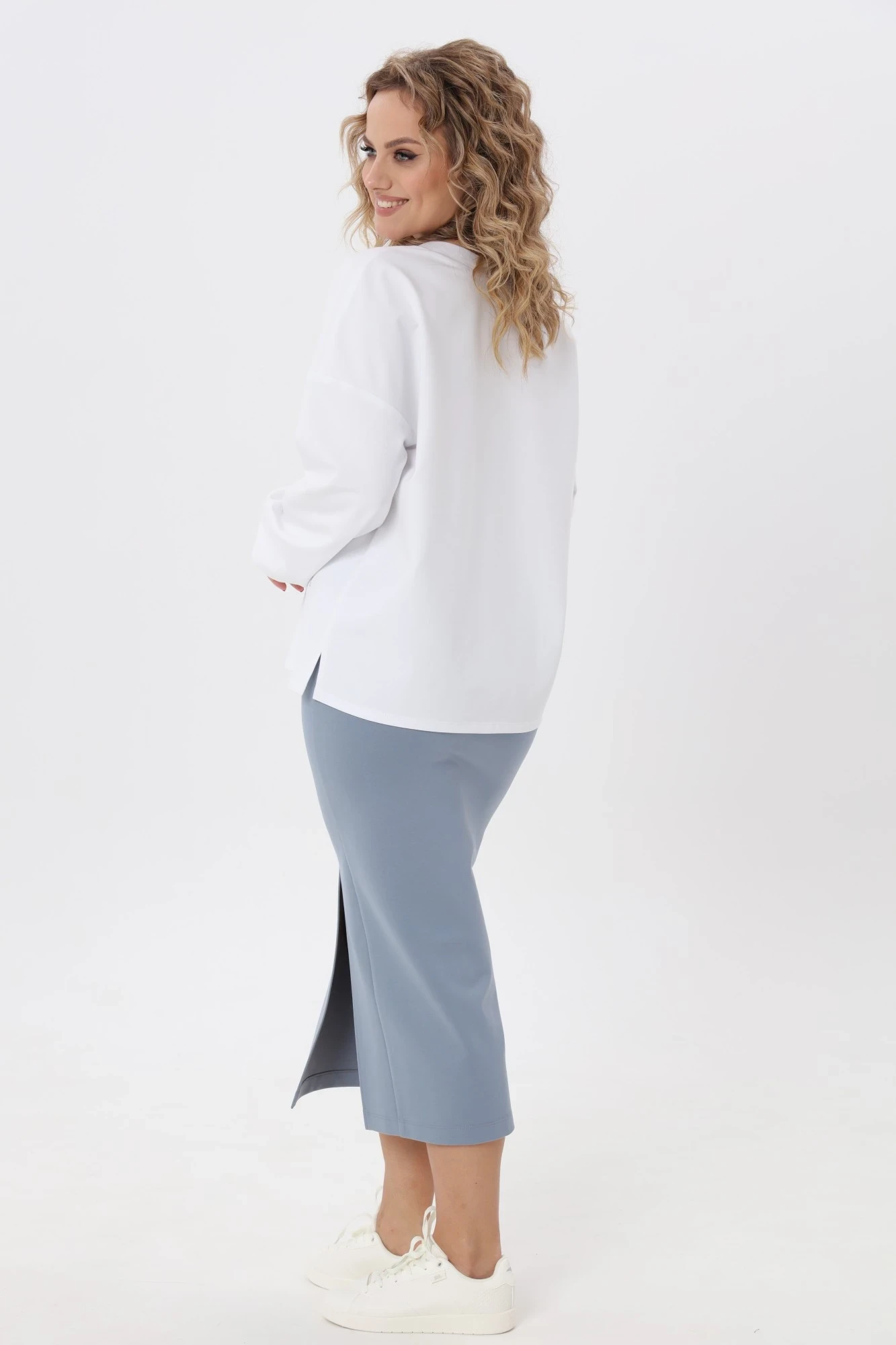 "Комплект-двойка из трикотажного полотна, состоящий из юбки миди и однотонного джемпера - это прекрасный выбор для тех, кто ищет сочетание комфорта и стиля в одежде и базовая вещь повседневного гардероба. Приталенный силуэт юбки и свободный крой джемпера сделает образ лаконичным и непринужденным. Комплект можно носить вместе или комбинировать элементы с другой одеждой. Он удобный и практичный, прекрасно подходит для любого типа фигуры.