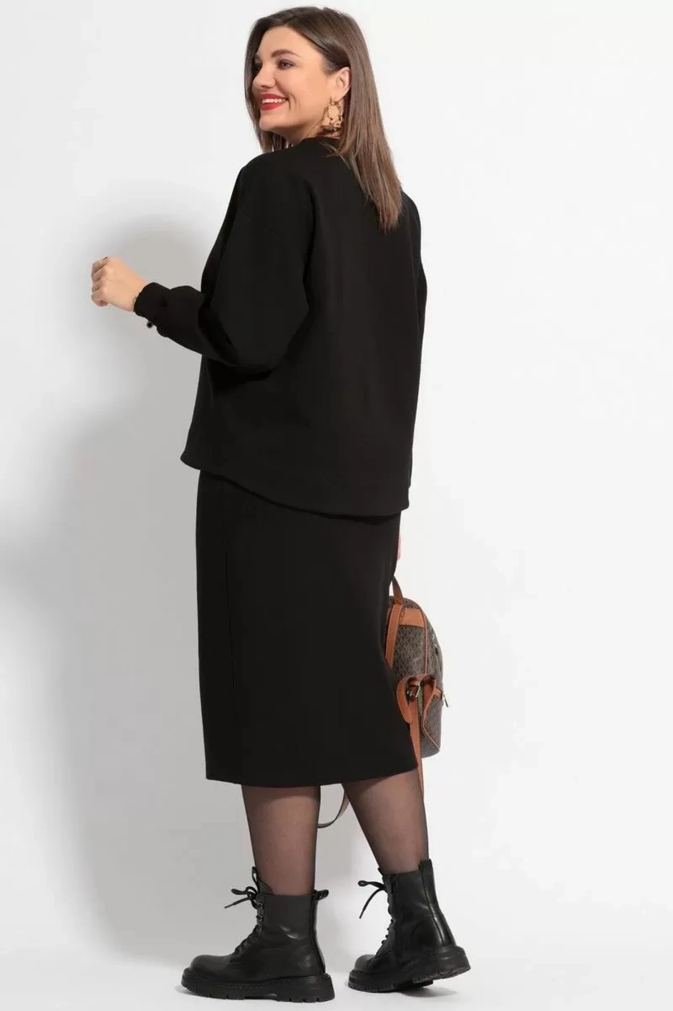 Комплект женский, полуприлегающего силуэта, состоящий из свитшота и юбки. Если вы хотите выглядеть нарядно и в то же время удобно, эта модель идеально подходит вам. Комплект выполнен из эластичной вискозной ткани, которая очень хорошо растяжима.
