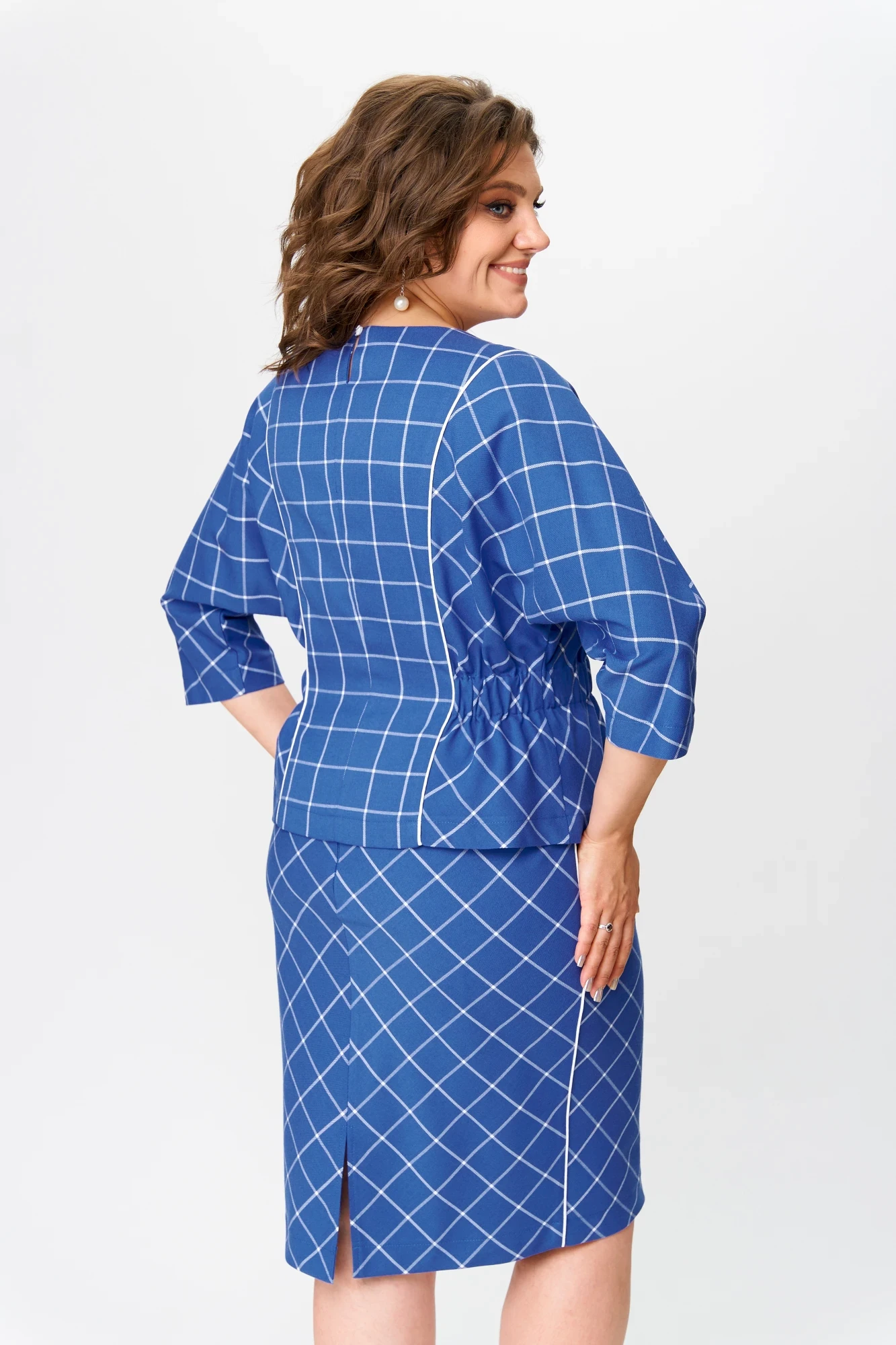 Стильный женский костюм выполнен из ткани с принтом в клетку.
