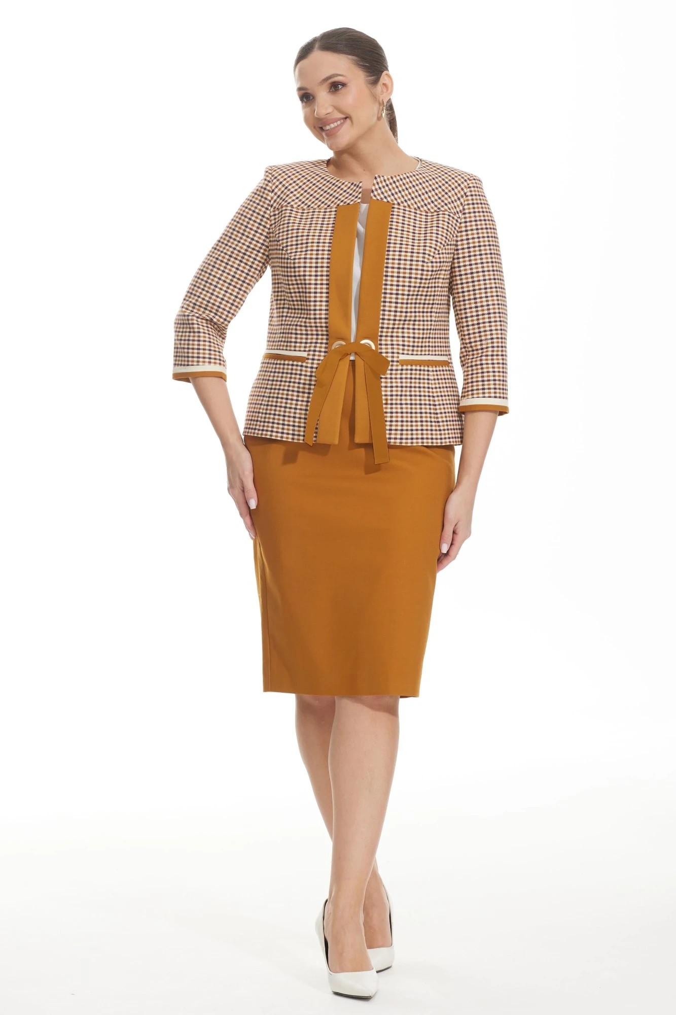 Хлопковый юбочный костюм Elady 3351 горчица тройка
