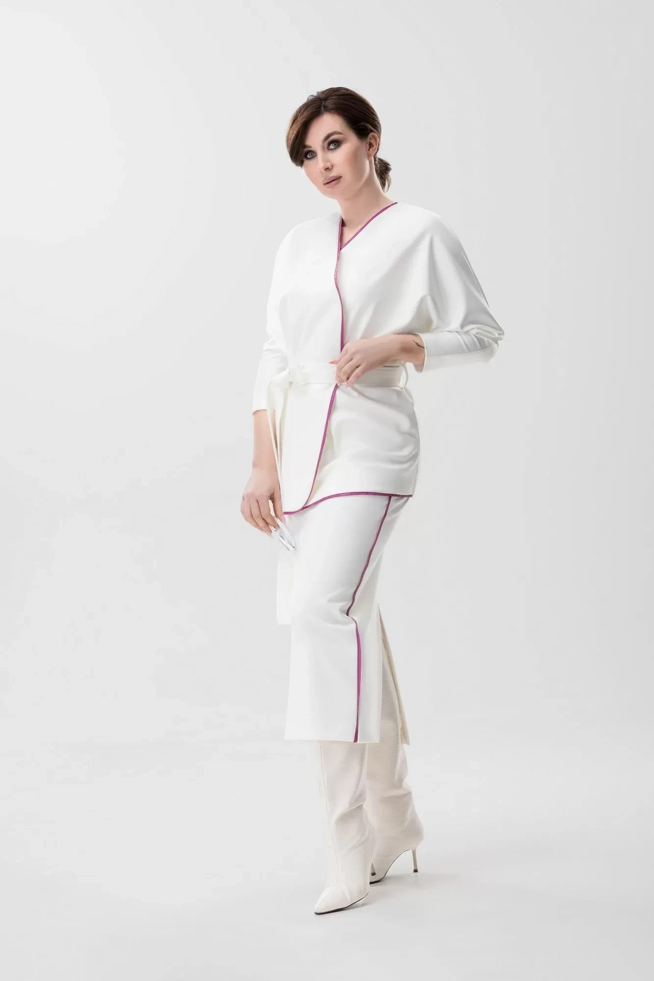 Размер 56 Кардиган: ОГ 130, ОТ 120, ОБ 120, ширина рукава на уровне низа 11,5, длина рукава цельнокроеного 69, длина кардигана по спинке 68; Юбка: ОТ 88-120, ОБ 117, ширина изделия по низу 54, длина изделия по боковому шву с поясом 87,5