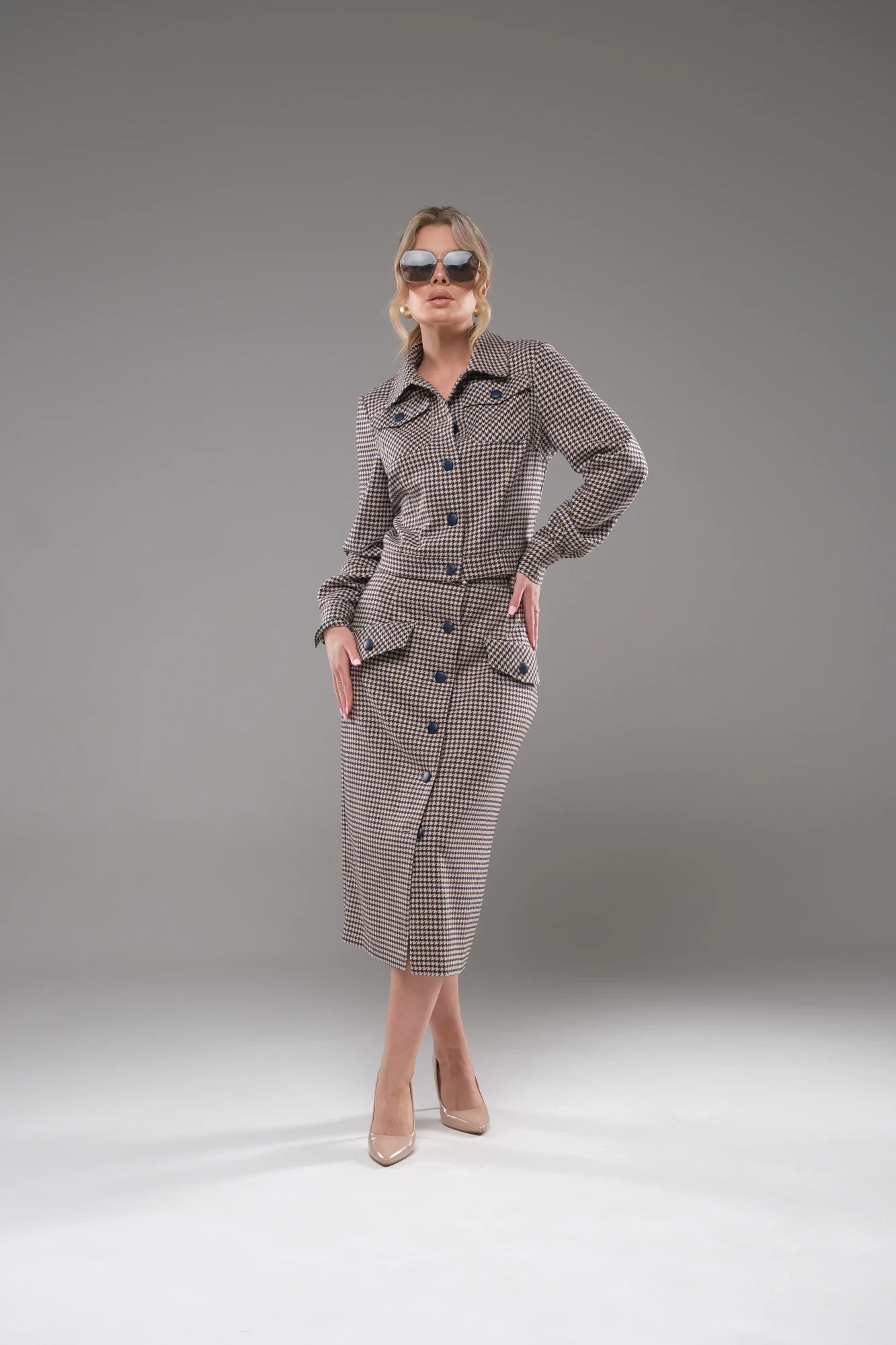Юбочный костюм Галеан-стиль 945 коричневый двойка