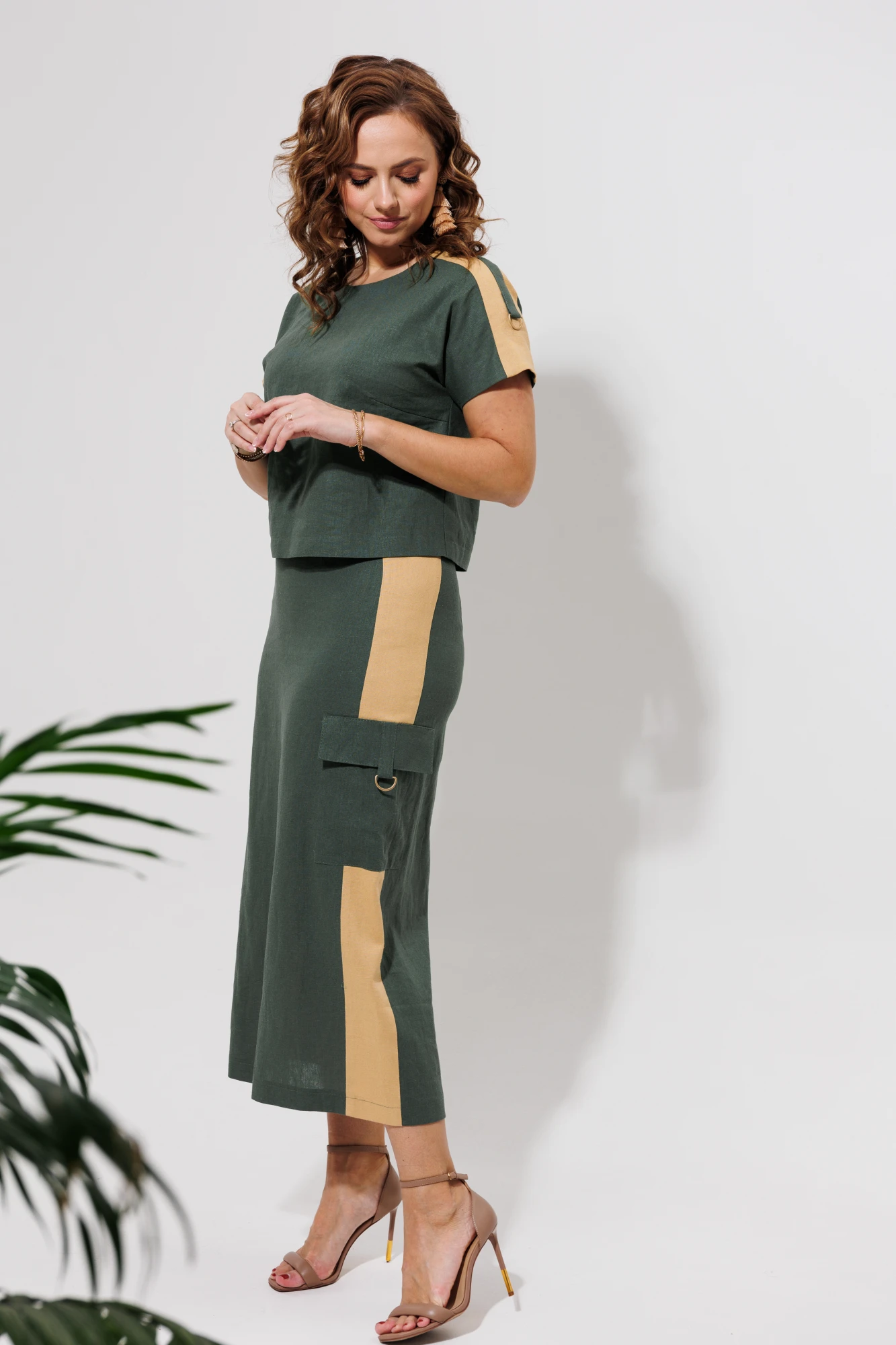 "Костюм женский блузка + юбка прямого силуэта, выполнено из льна двух цветов.
