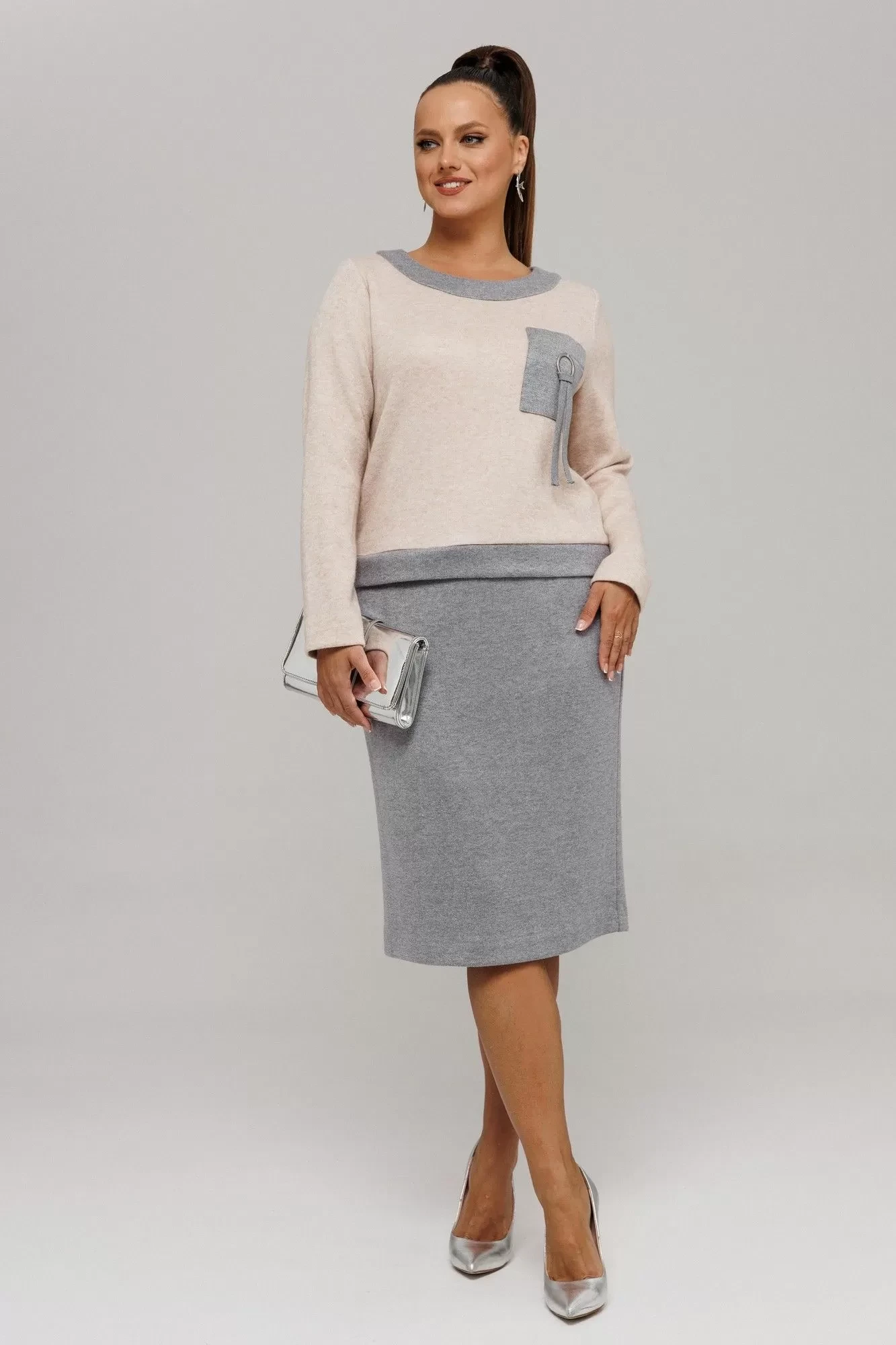 Юбочный костюм Галеан-стиль 993 Серый_с_бежем двойка