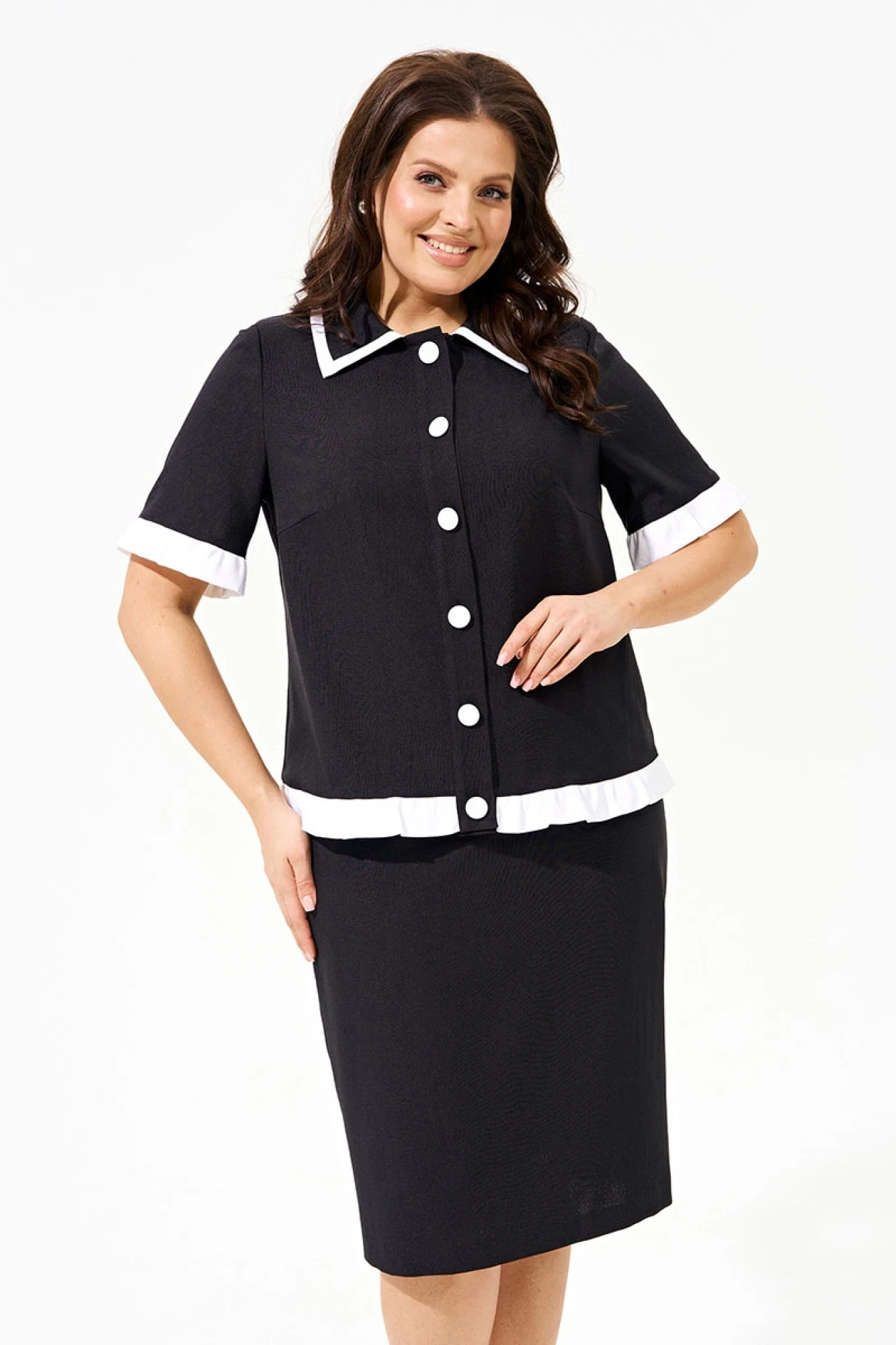 Костюм женский полуприлегающего силуэта выполнен из облегченной костюмной ткани с небольшим содержанием стрейча и состоит из жакета и юбки.