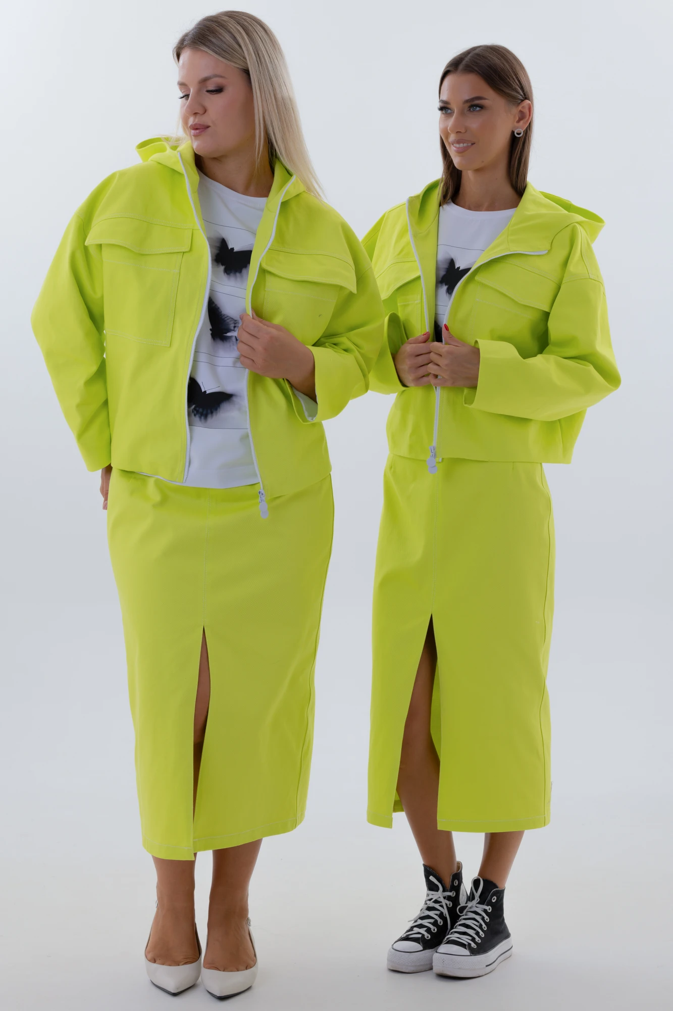 Kivvi Wear представляет идеальный дуэт, где уличный шик встречается с безупречной элегантностью. Джинсовый костюм — это гармоничный ансамбль из укороченной ветровки и юбки-карандаш, созданный для тех, кто ценит смелые контрасты и многослойность.