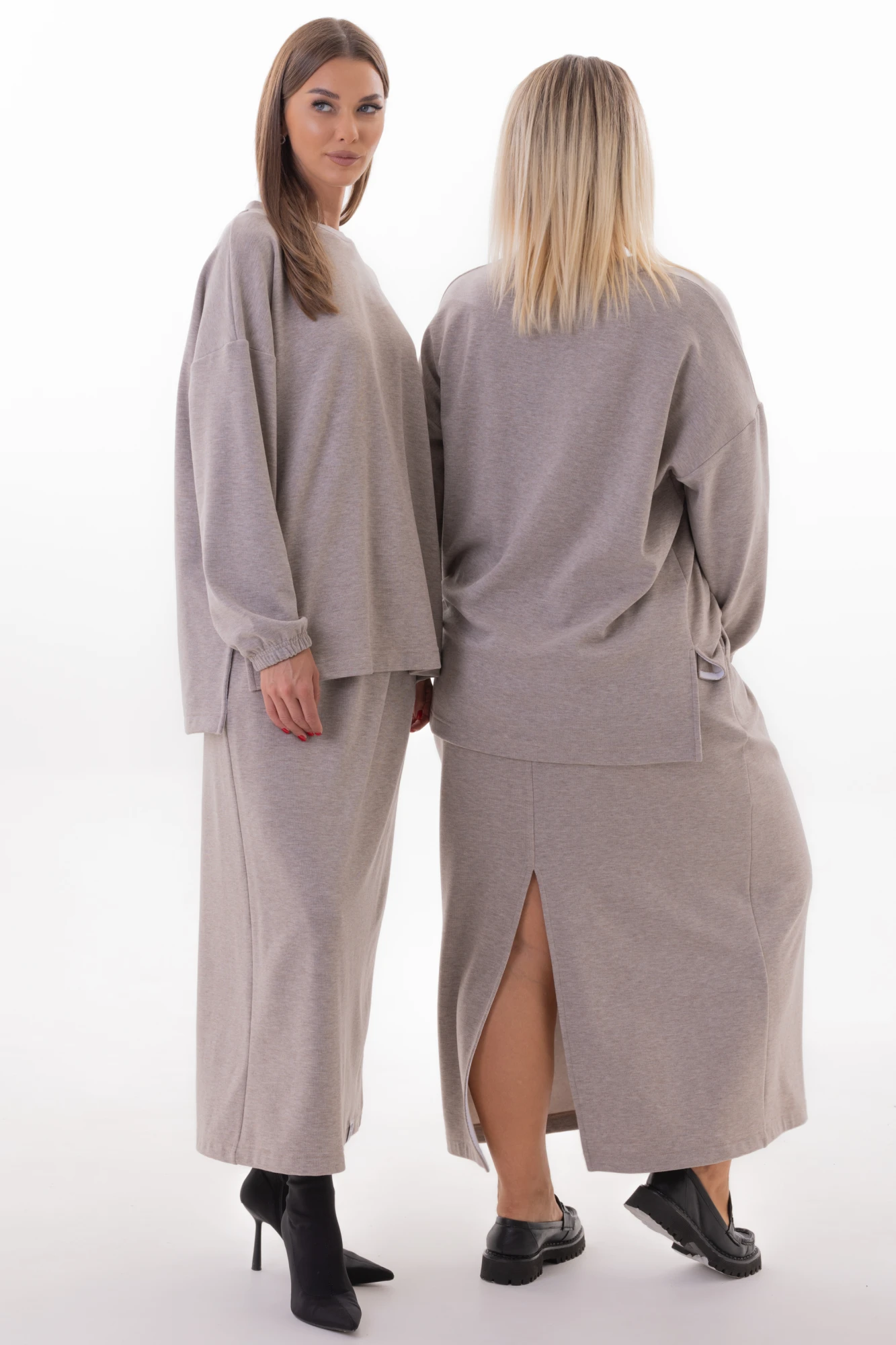 Kivvi Wear представляет идеальный дуэт для тех, кто ценит уют и эстетику минимализма. Костюм из мягкого селаника — это гармоничное сочетание джемпера свободного кроя и длинной юбки, созданное для moments, когда комфорт становится главным выражением стиля.