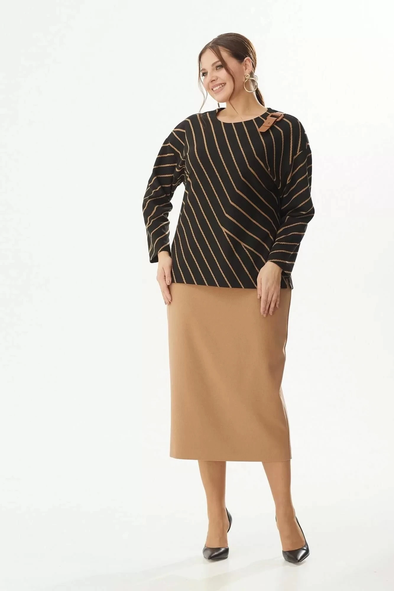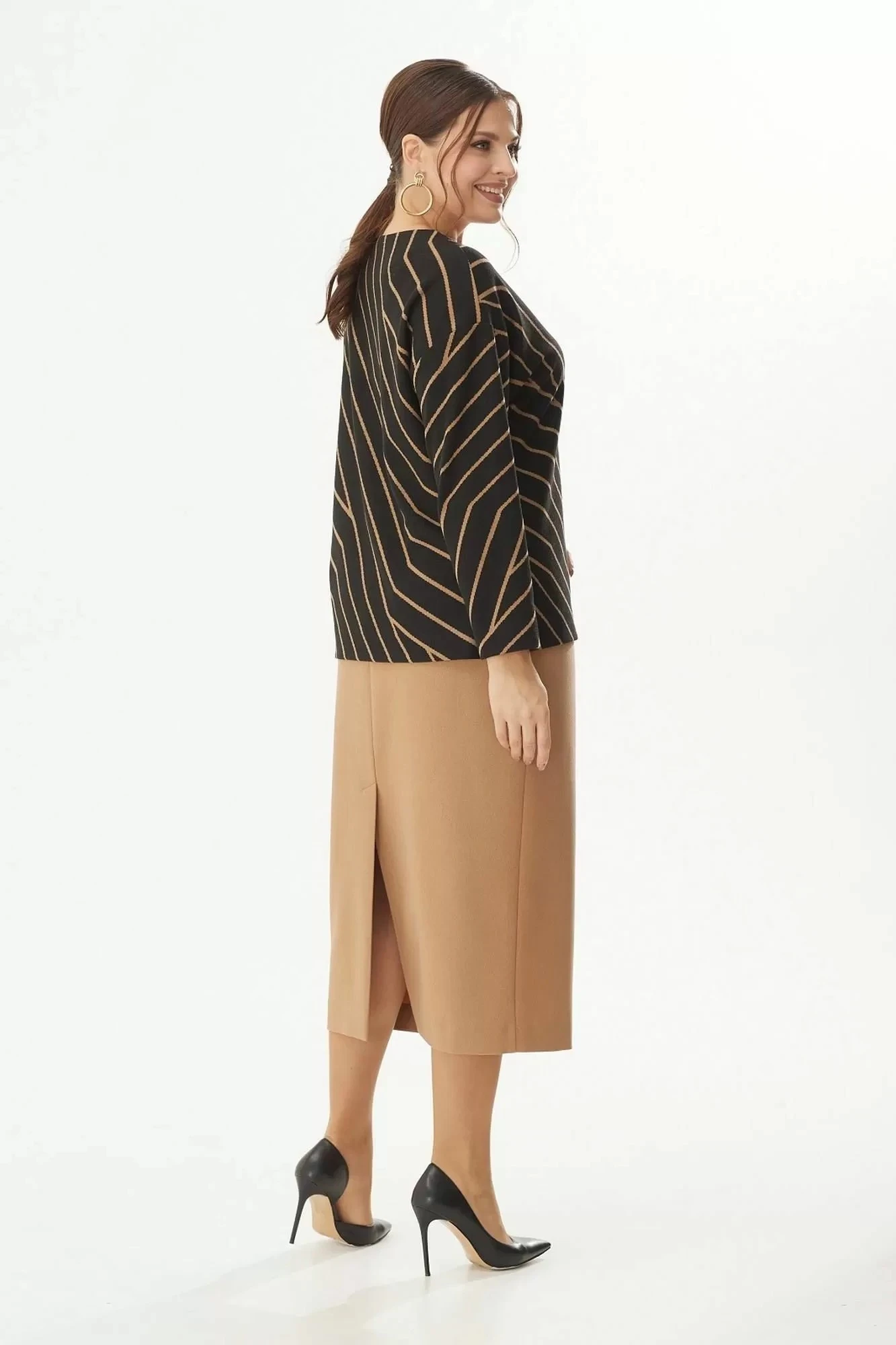 Юбочный костюм Кокетка и К 1104 черный+бежевый двойка