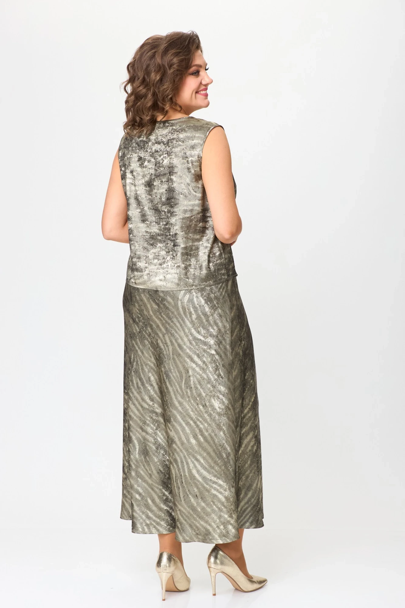 Юбочный костюм Кокетка и К 1215 хаки/чёрный тройка