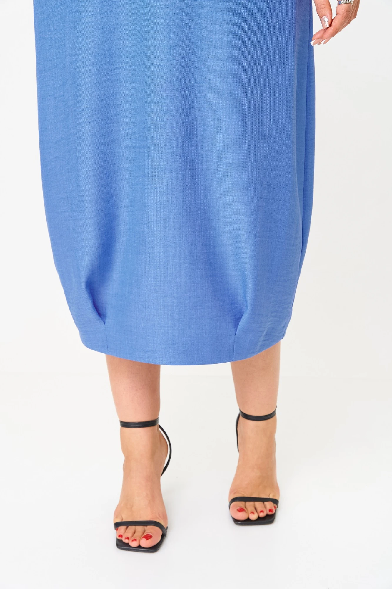 Элегантный женский костюм из хлопково-льняной ткани с эффектом "крэша", без подкладки. Жакет укороченный, двубортный, с застежкой на пуговицы, одним функциональным карманом, низ жакета ассиметричный, фигурный, вырез горловины У-образный с лацканом и планкой, рукав целькроенный, длиной 3/4. Юбка удлиненная, свободного облегания, с вытачками по низу, разрезом сзади, функциональными карманами и отрезным поясом на резинке.