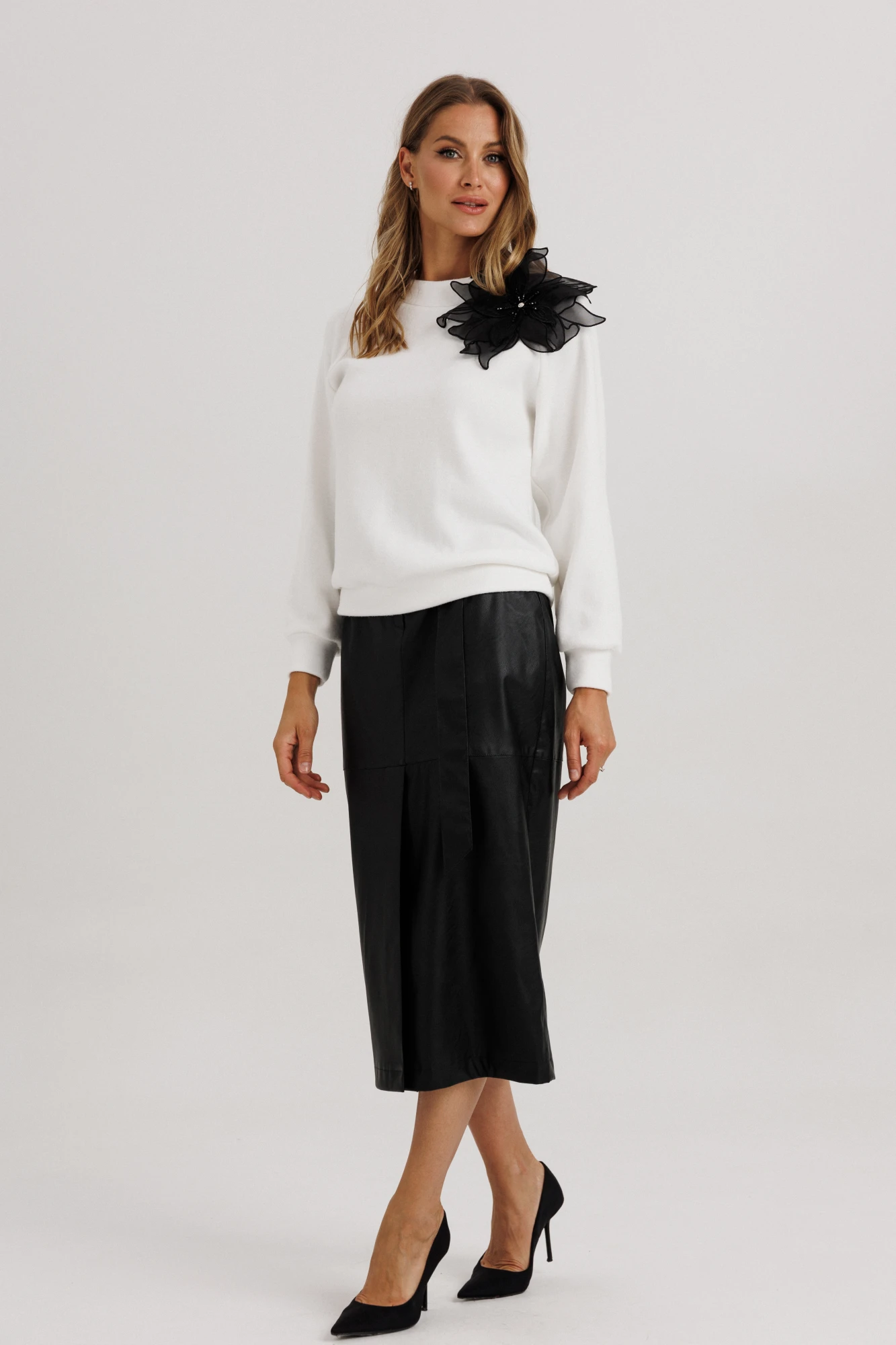 Отдельным декоративным элементом выступает съемная брошь-цветок.