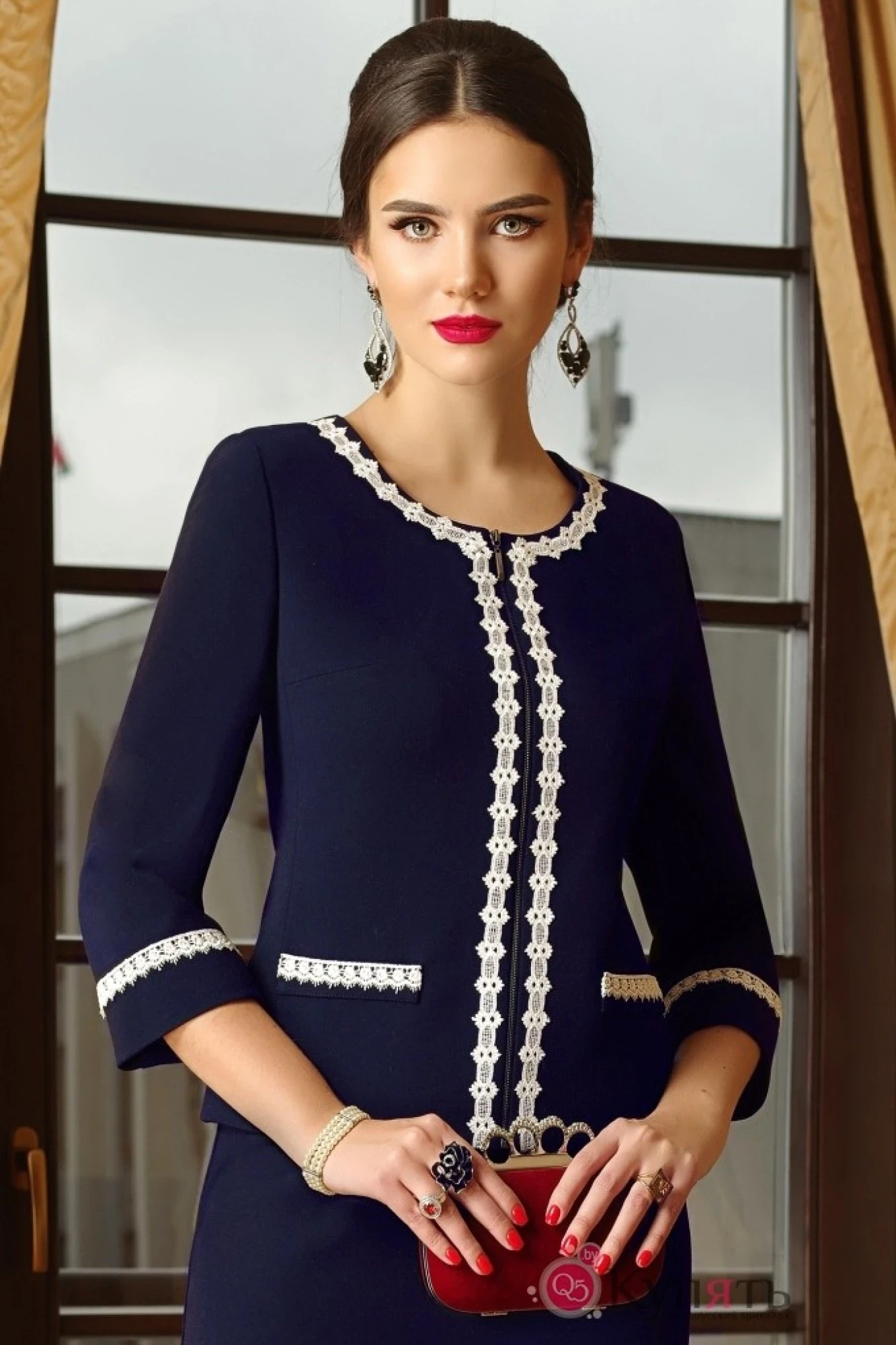 Дизайнерский костюм в духе современной итальянской классики. Жакет полуприлегающего силуэта выполнен из мягкой костюмной ткани с отделкой из узкого плотного кружева . Перед с центральной застежкой и накладными листочками с кружевом, застегивается на разъемную металлическую молнию. Спинка со средним швом и вертикальными рельефами. Рукав втачной, свободный (3\4), по низу рукава отделка из кружева. ). Юбка карандаш средней посадки с отрезным поясом, слегка заужена к низу. Застежка на потайную молнию в среднем шве спинки.Жакет и юбка на полдкладке!Жакет длинной по спинке ≈ 55,0 см., длинна рукава ≈ 48,5 см. Длина юбки вдоль середины переднего полотнища ≈ 59,5