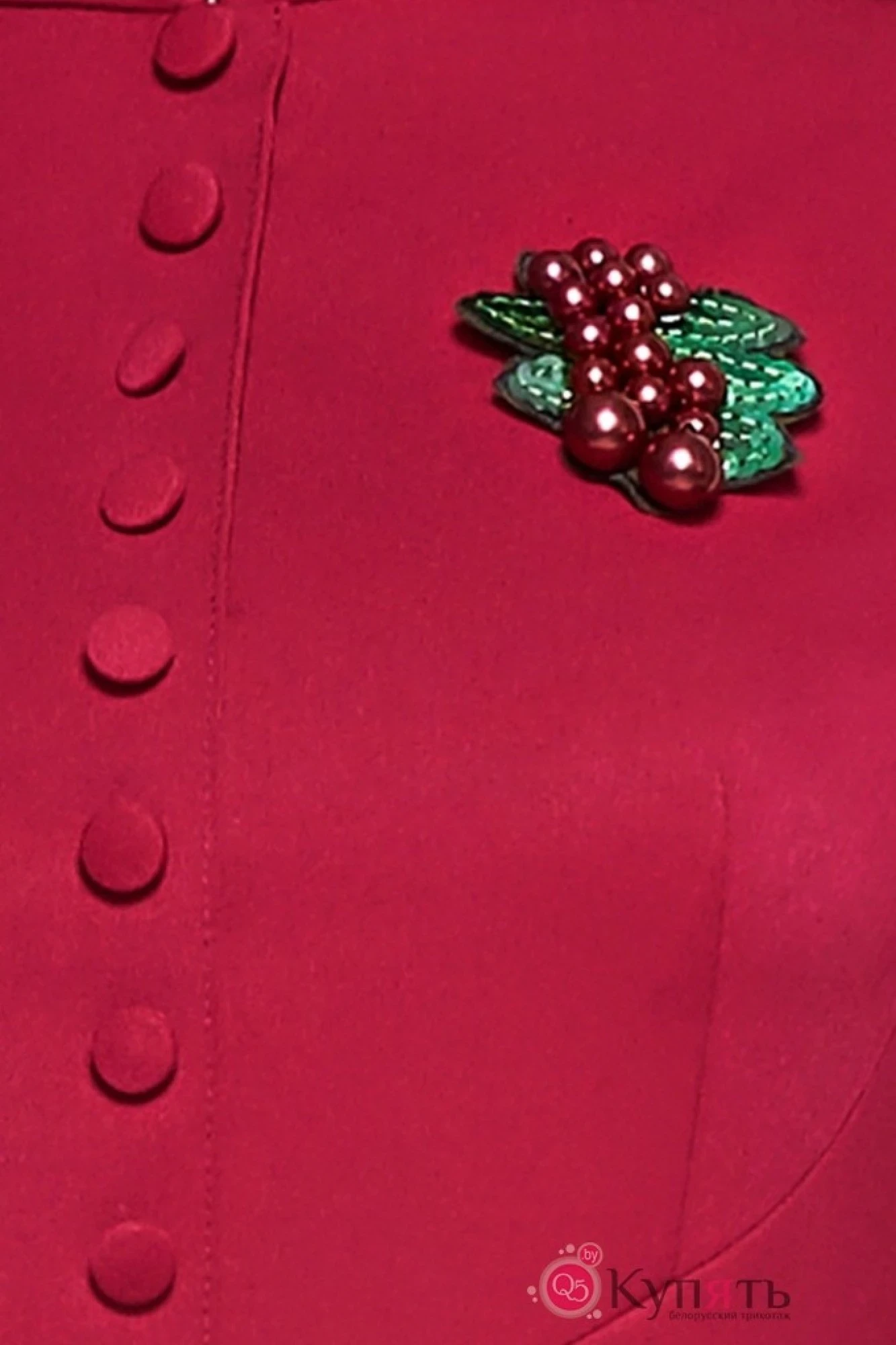 Современный дизайнерский костюм выполнен в соответствий со всеми модными тенденциями и трендами. Элегантный женственный силуэт и строгий стиль вот основа современной классики. Свитшот полуприлегающего силуэта с отрезной стойкой, от шва притачивания стойки по переду выполнена имитация центральной застежки на планку с пришитыми поверх пуговицами (маленький французкий шик пуговицы обтянутые тканью). Перед оформлен нагрудными вытачками с V-образной кокеткой выше уровня талии и украшен дизайнерской брошью ручной работы. Брошь выполнена из итальянских пайеток и бусин. Спинка со средним швом и талиевыми вытачками, застежка на потайную молнию в среднем шве спинки (стойка застегивается на навесную петлю и потайную пуговицу). Рукав втачной свободный, с небольшой сборкой по окату и низу рукава, низ оформлен узкой манжетой . Юбка карандаш с отрезным поясом и талиевыми вытачками , застежка на потайную молнию в среднем шве, по низу юбки шлица. По бокам юбки выполнены узкие вставки с заложенными складки, о складок вверх пришиты декоративные пуговицы.
