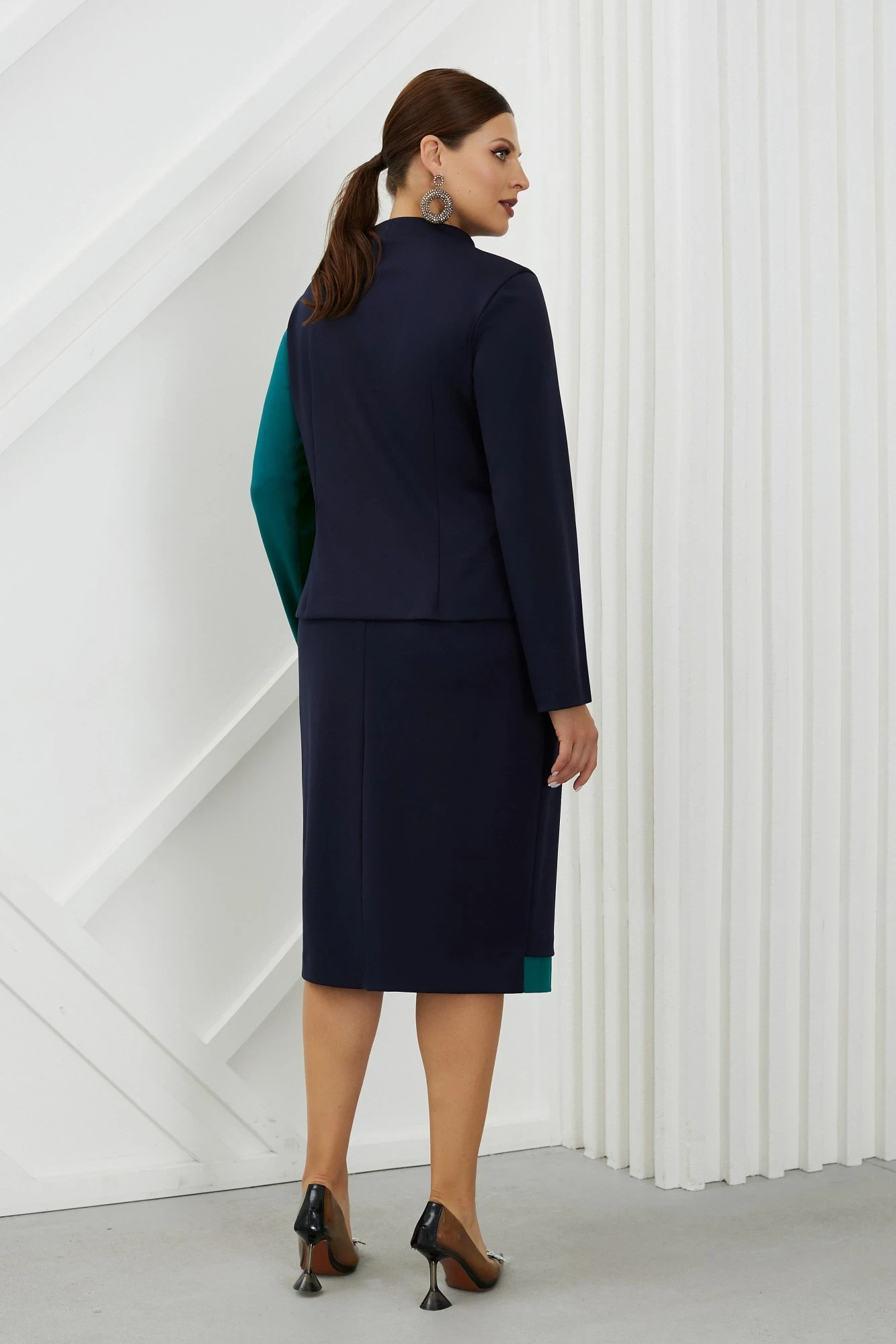 Юбка на поясе с резинкой. Переднее полотнище с отделочной деталью из контрастной ткани и шлицей. Заднее полотнище с потайной молнией в среднем шве. Юбка на подкладке.