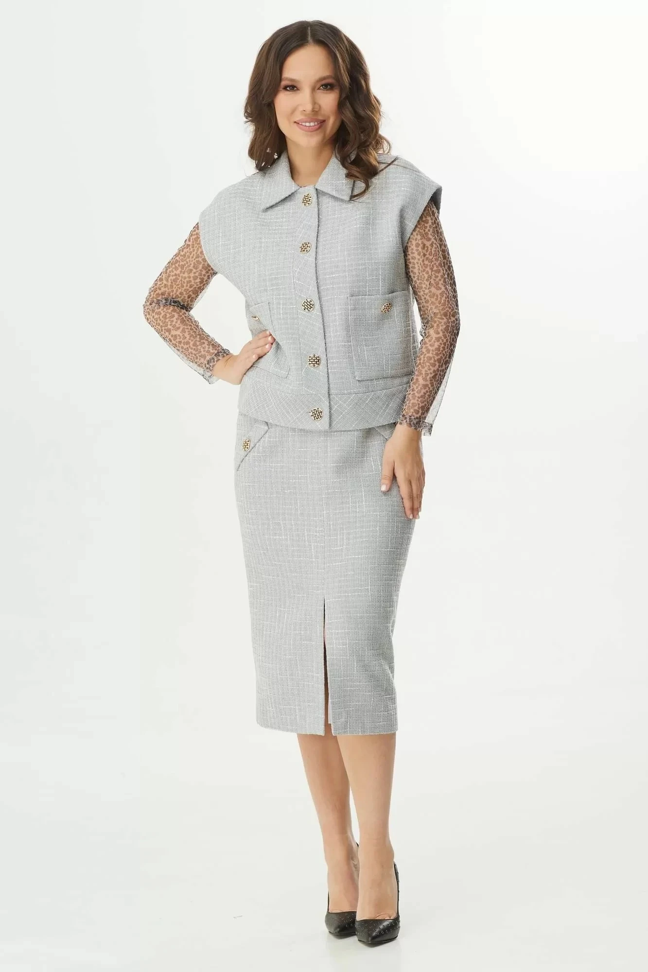 Юбочный костюм Магия Моды 2392 серый-леопард тройка
