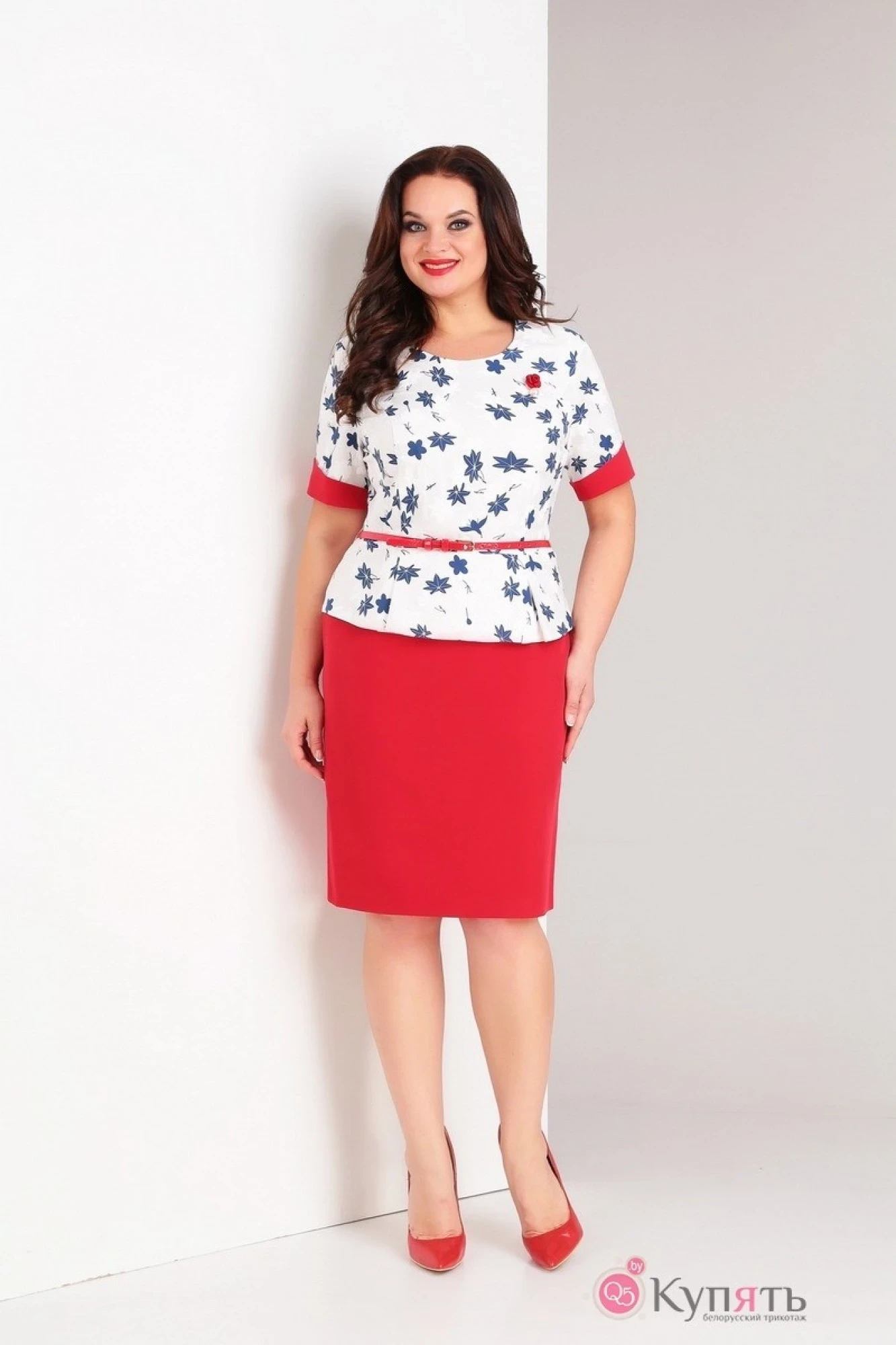 Юбочный костюм Милора Стиль 446 кленовые листья/красный