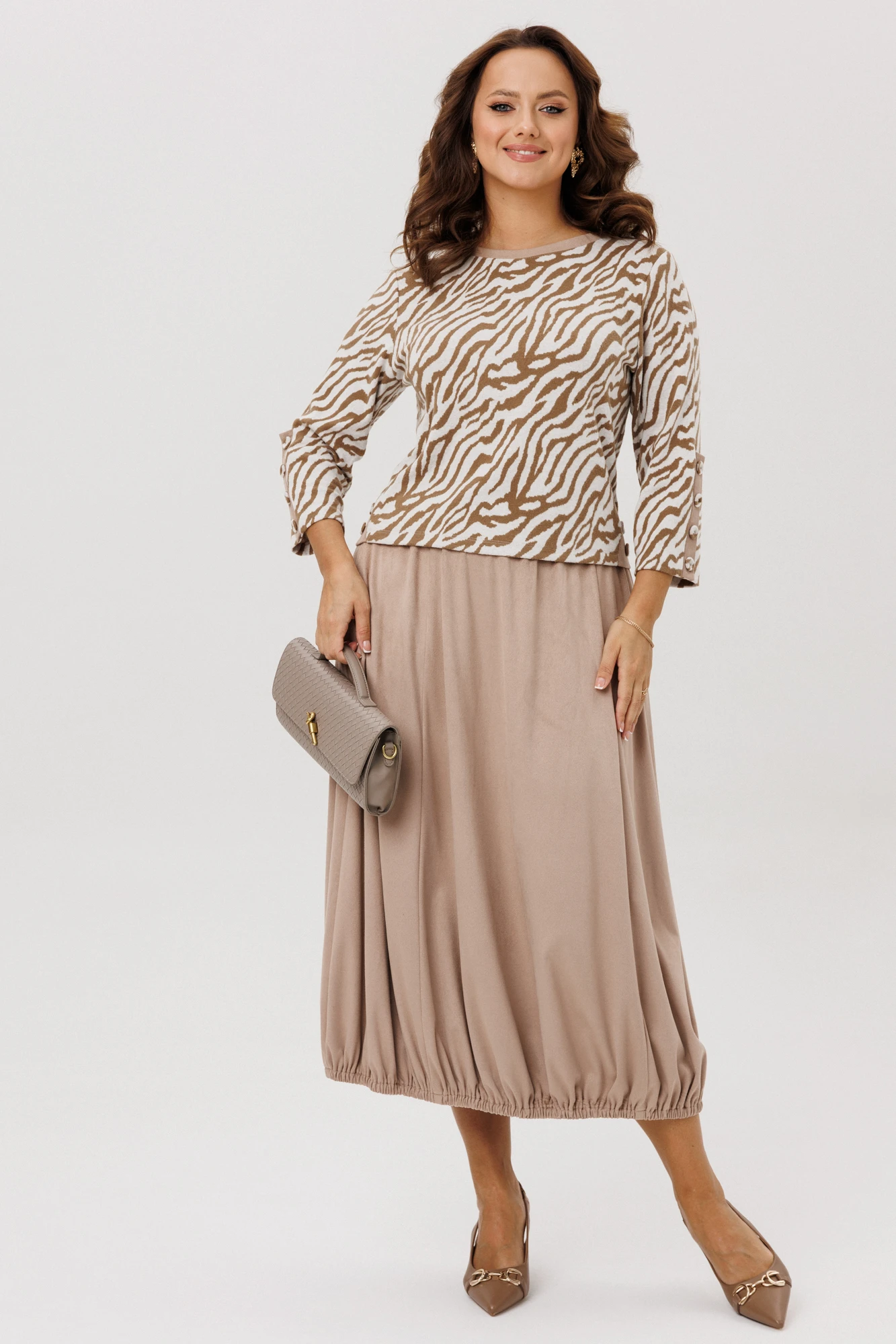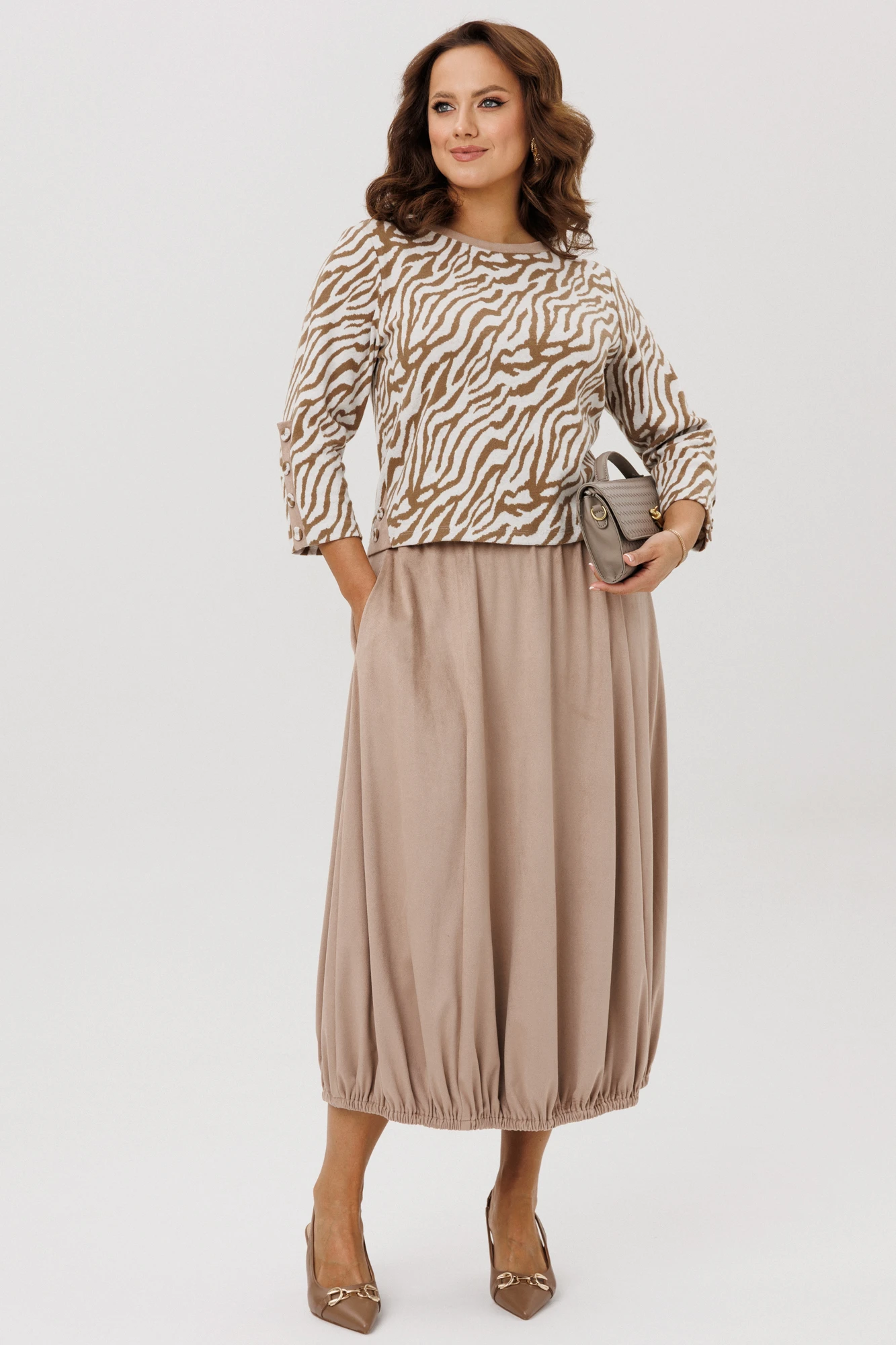 Юбочный костюм Мублиз 293 беж+зебра